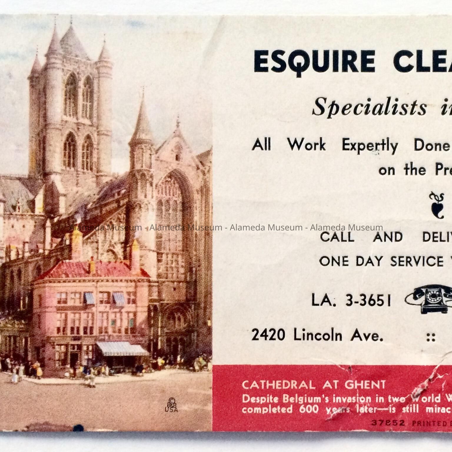 AN ADVERTISING INK BLOTTER ISSUED BY THE ESQUIRE CLEANERS, INC., LOCATED AT 2420 LINCOLN AVENUE, ALAMEDA.
