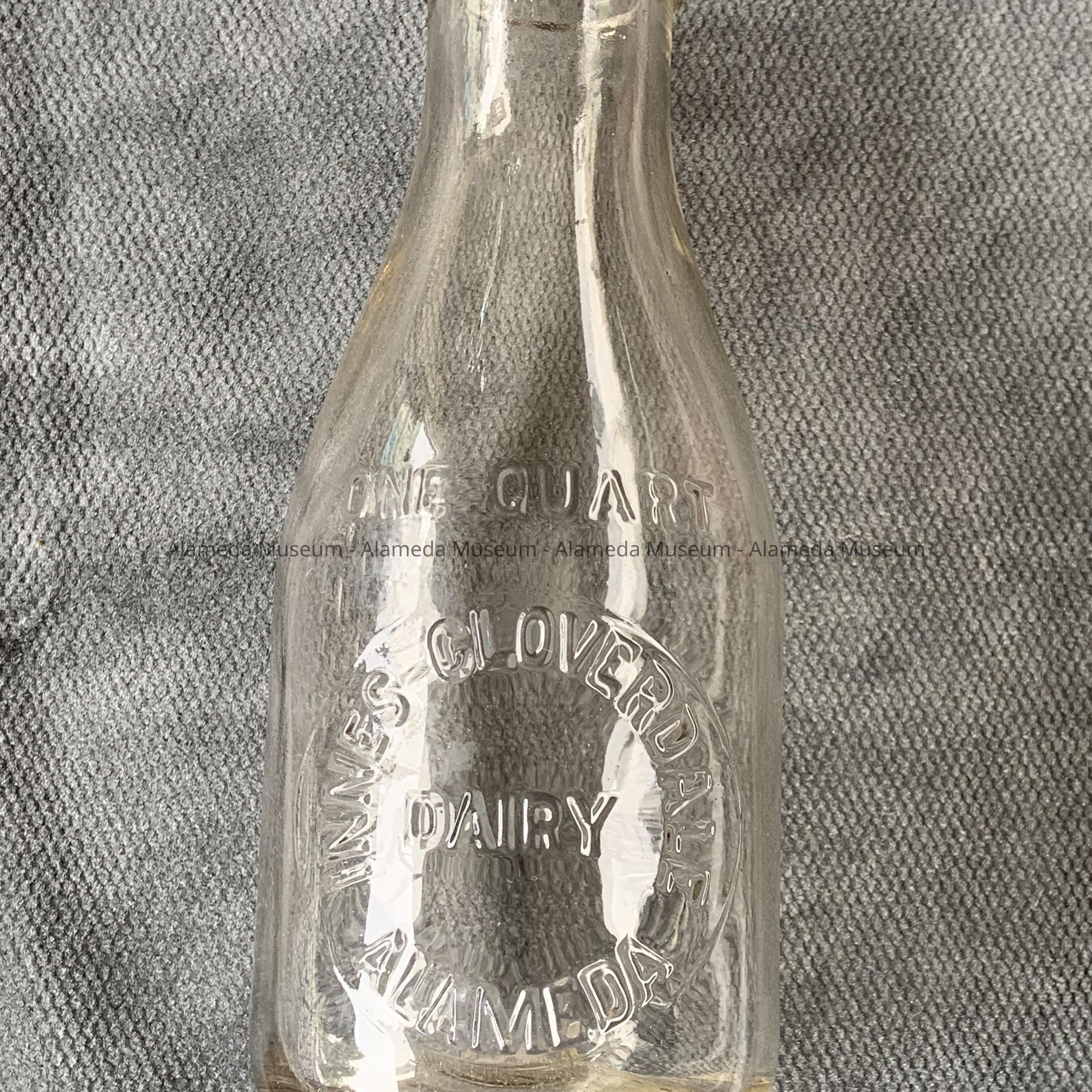 History of Object: An advertising quart-size milk bottle with an embossed label reading, “Innes-Cloverdale Dairy, Alameda".