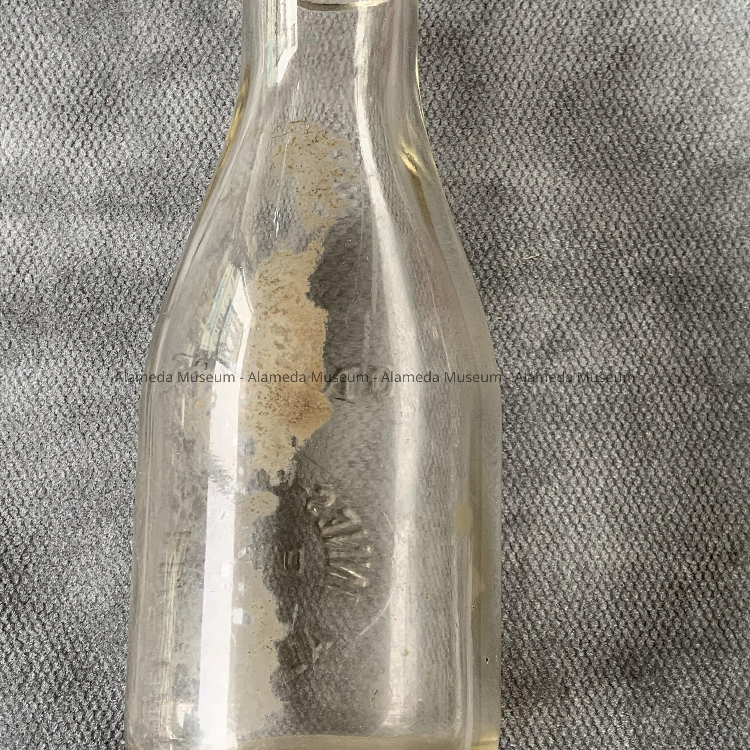 ONE-QUART MILK BOTTLE FROM THE INNES-CLOVERDALE DAIRY, ALAMEDA. THE DAIRY WAS LOCATED BEHIND THE DONOR'S RESIDENCE AT 417-19 TAYLOR AVENUE, ALAMEDA, AND WAS OPERATED BY HIS FATHER, FRANK H. PERKINS. DONOR'S MOTHER WAS ETHEL M. PERKINS.