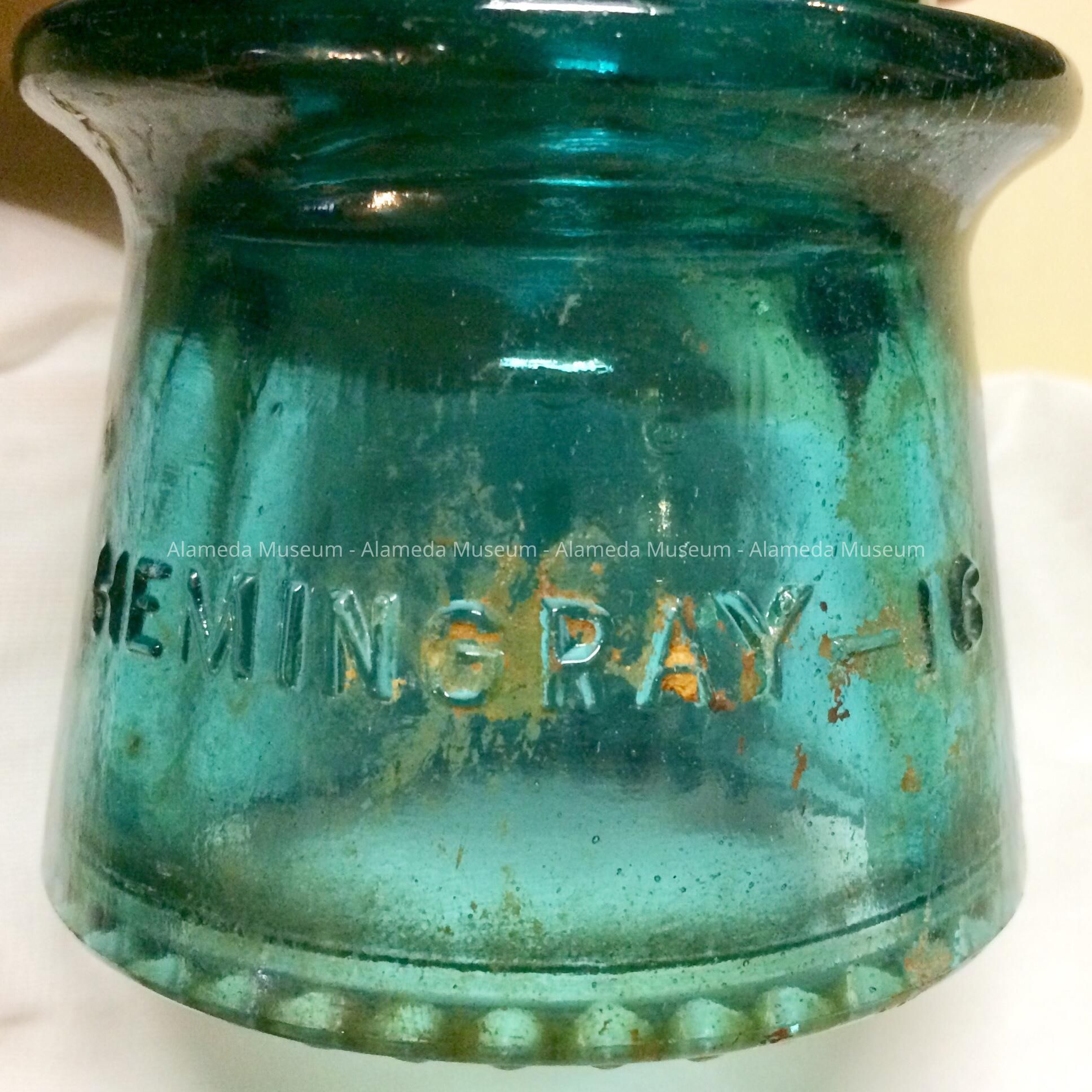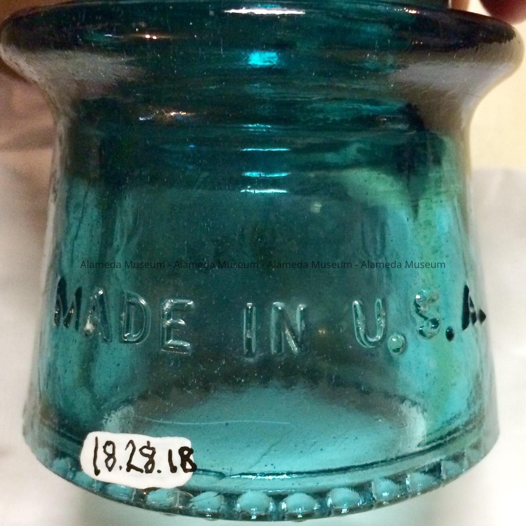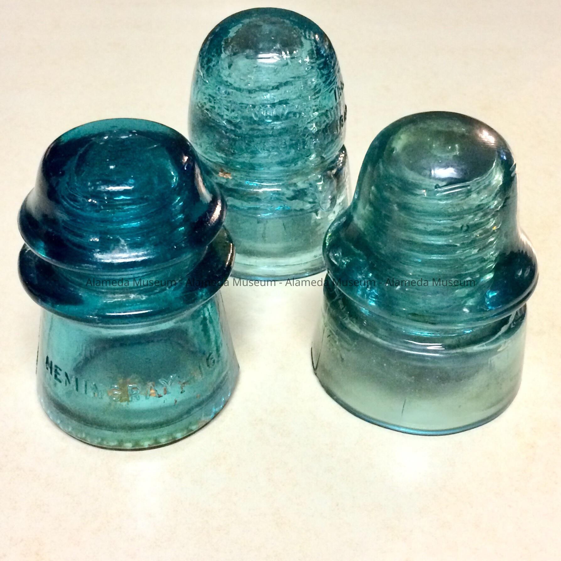 History of object: Insulators used by the Alameda Bureau of Electricity. They were acquired from Delbert Lloyd, a lineman for the Bureau of Electricity from 1949 to 1986 who resided at 1225 Walnut St., Alameda.