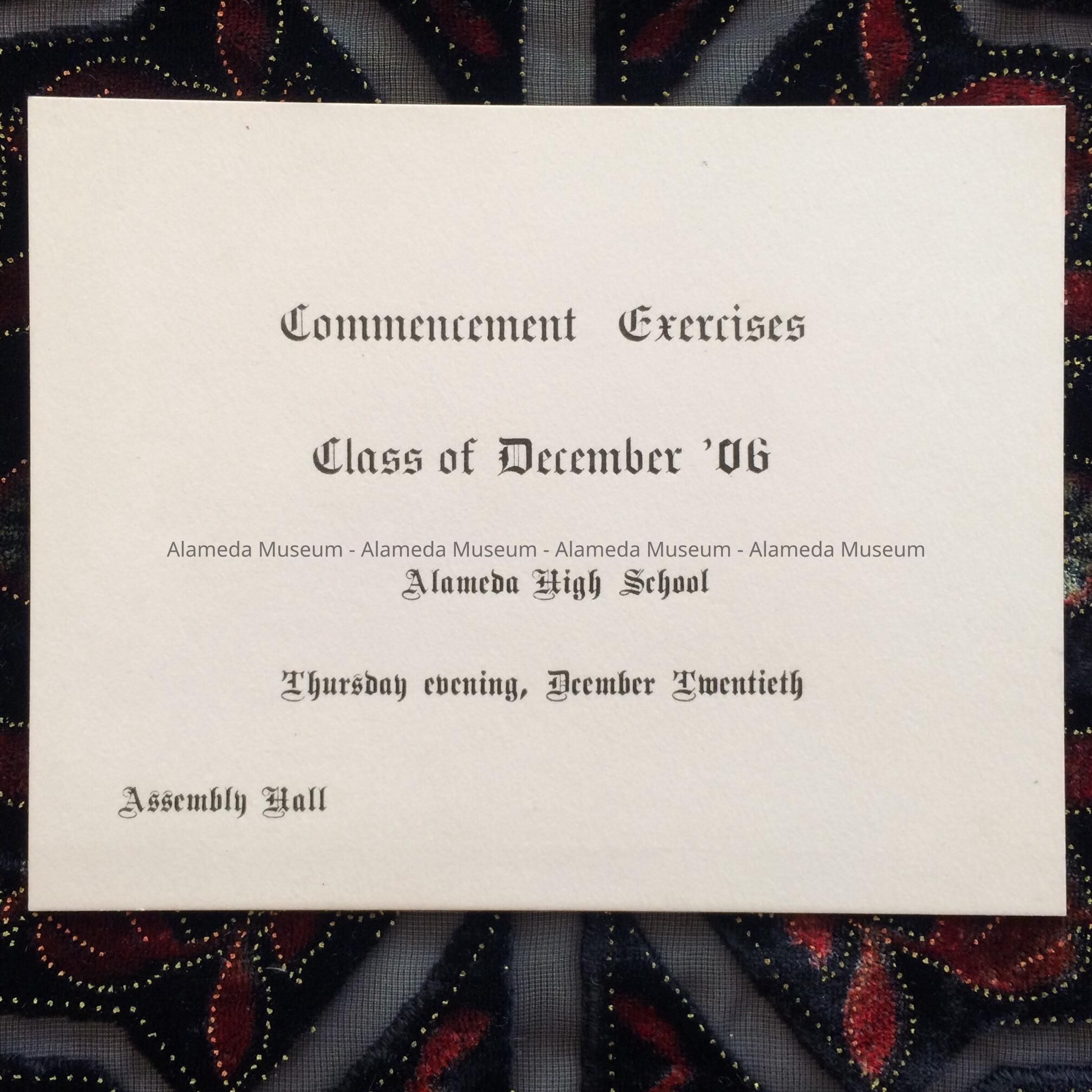 Invitation Commencement Exercises Alameda High School, Dec. 1906Entry/Object ID