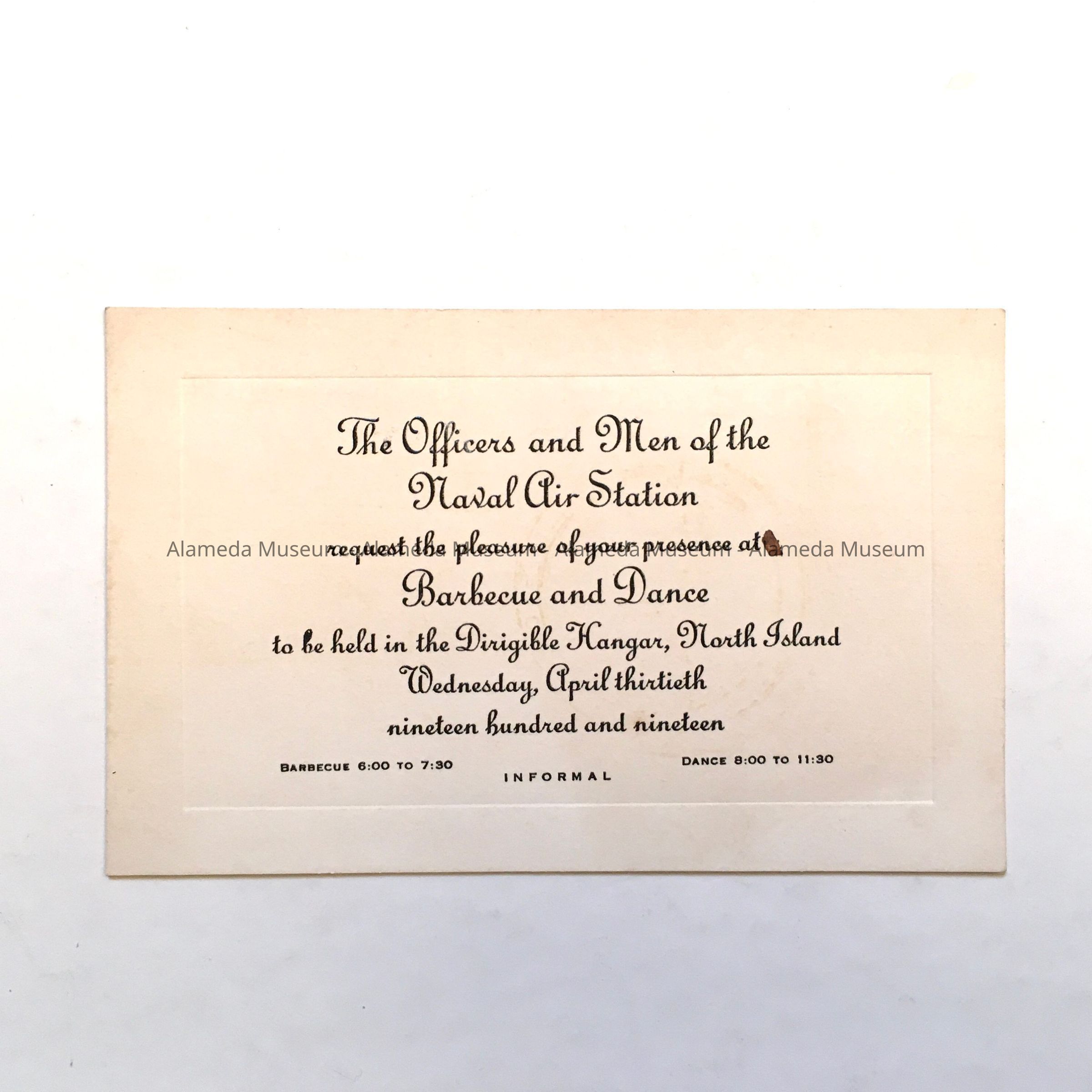 Invitation for BBQ and Dance in San Diego addressed to Otto Rittler, 1919Entry/Object ID