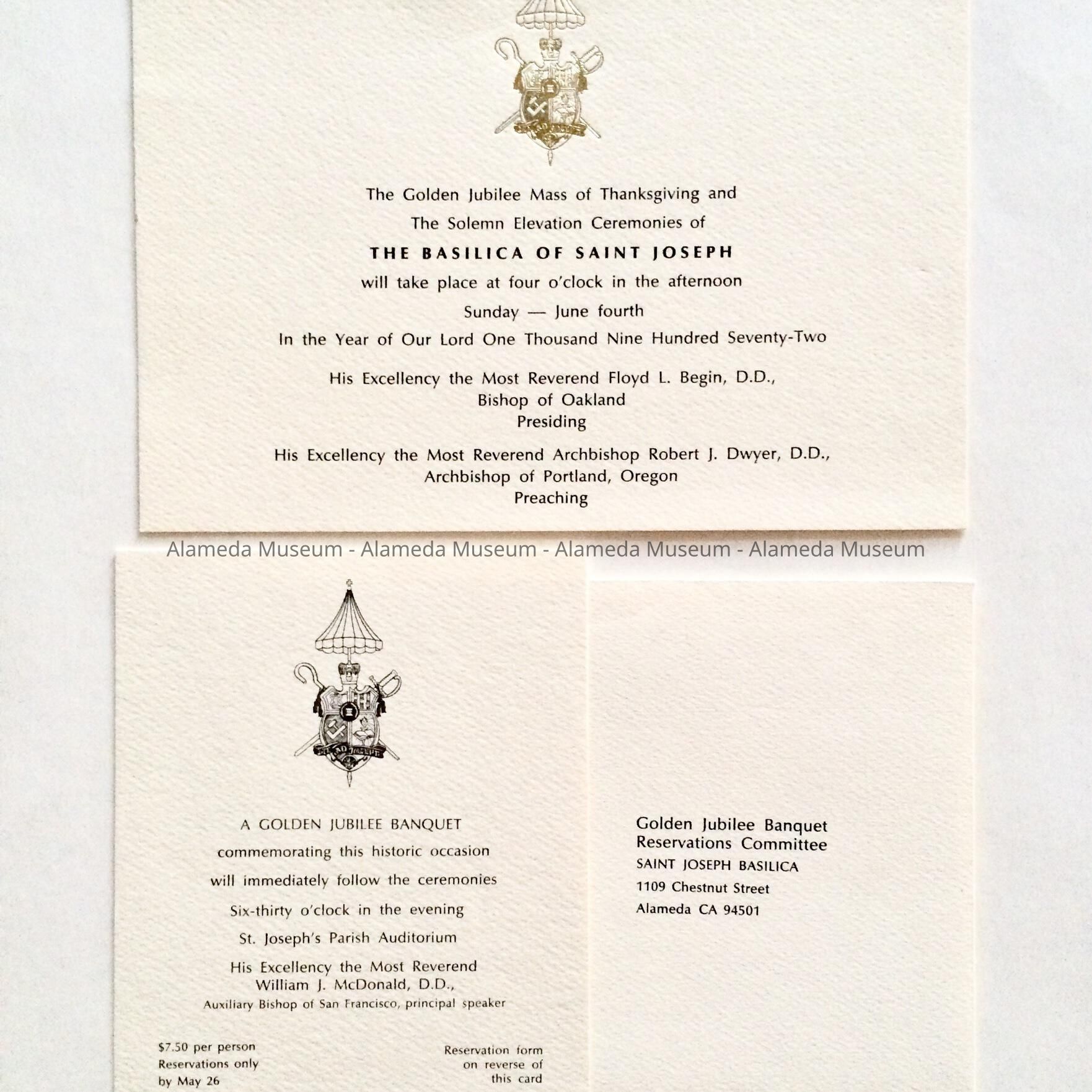 A. INVITATION TO THE GOLDEN JUBILEE MASS OF THANKSGIVING AT THE BASILICA OF SAINT JOSEPH IN ALAMEDA, CALIFORNIA, TO BE HELD ON JUNE 4, 1972.