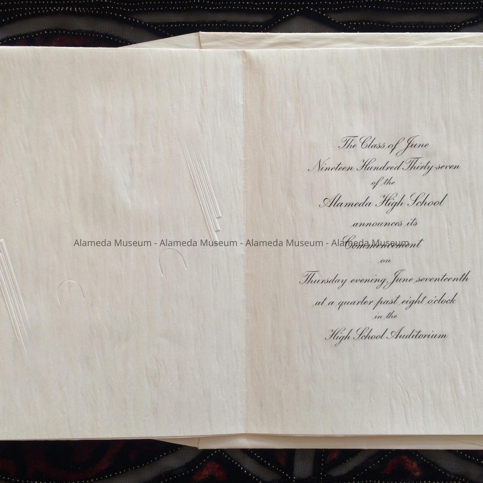 Invitation to graduation ceremony Alameda High School Class of 1937Entry/Object ID