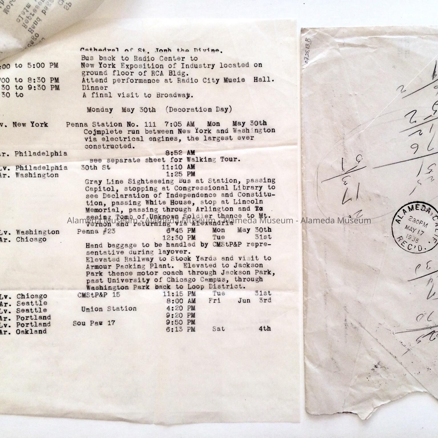 OBJECT: ITINERARY AND ENVELOPE