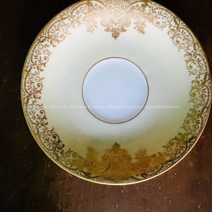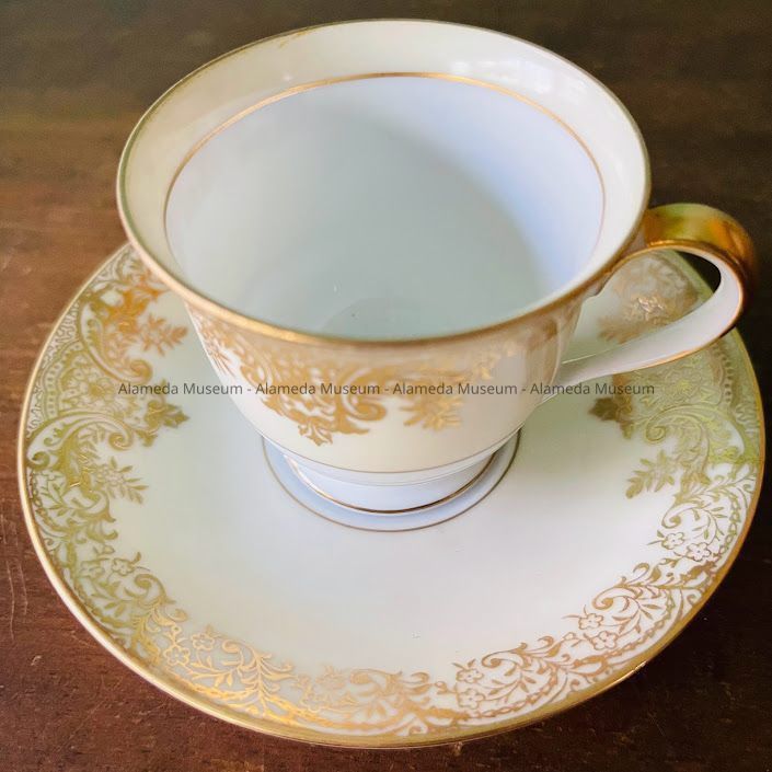 CUP AND SAUCER FROM THE COLLECTION OF THE LATE MRS SIDNEY HENDRICKSON OF 2941 FERNSIDE BLVD, ALAMEDA, CA.