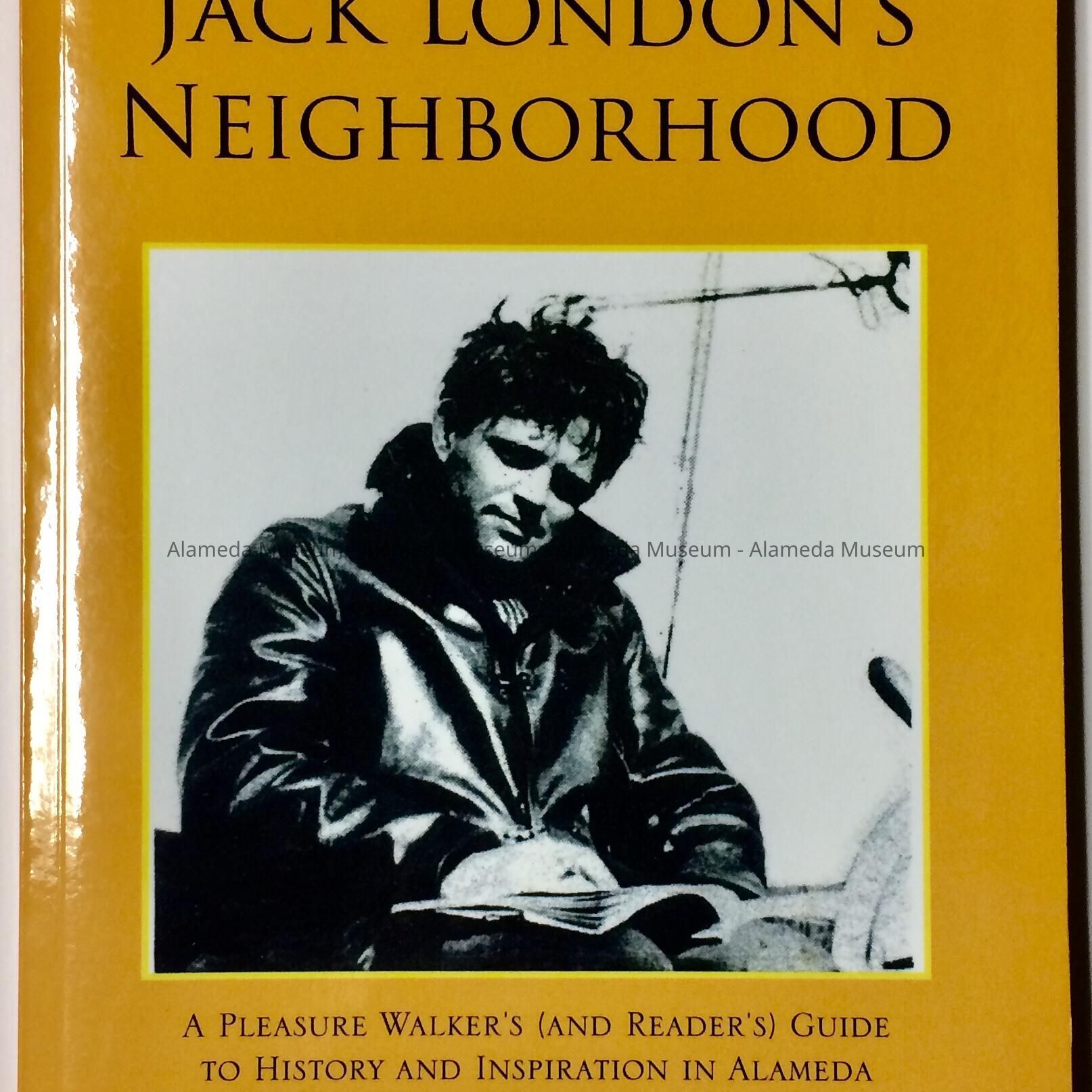A SOFT-COVER BOOK, WITH ILLUSTRATED COVER REPRESENTING THE LIKENESS OF THE AUTHOR, JACK LONDON. COVER HAS BLACK-AND-GOLD-COLORED TYPE AND A BOLD-PRINTED CAPTION, "JACK LONDON'S NEIGHBORHOOD."