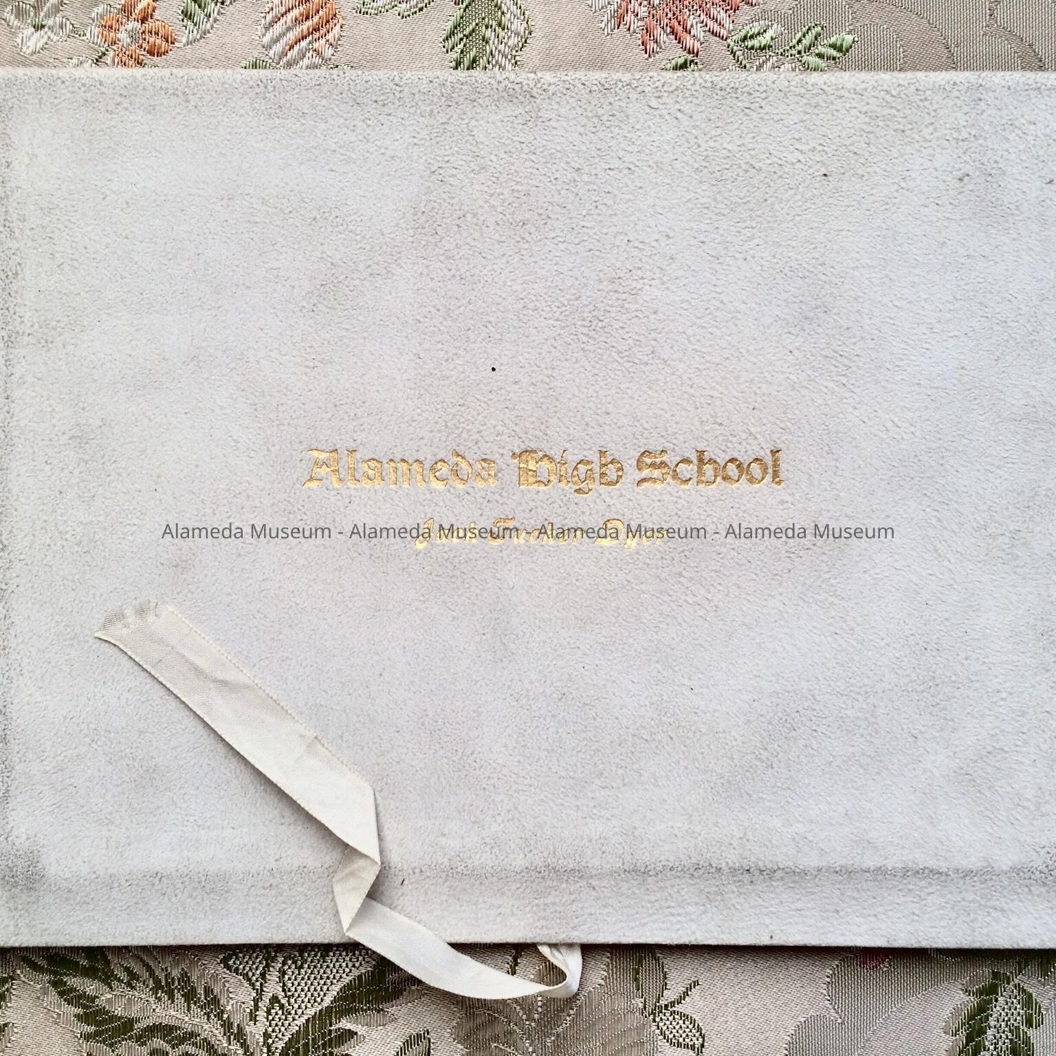 A COVERLET OF OFF-WHITE-COLORED KID LEATHER. COVER HAS AN INCISED CAPTION IN GOLD, "ALAMEDA HIGH SCHOOL, JACK TUCKER DYER."