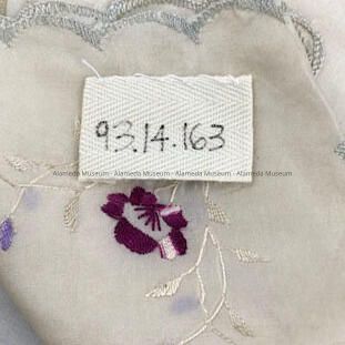 Japanese white raw silk handkerchief with colored flowers, 1900-1920sEntry/Object ID