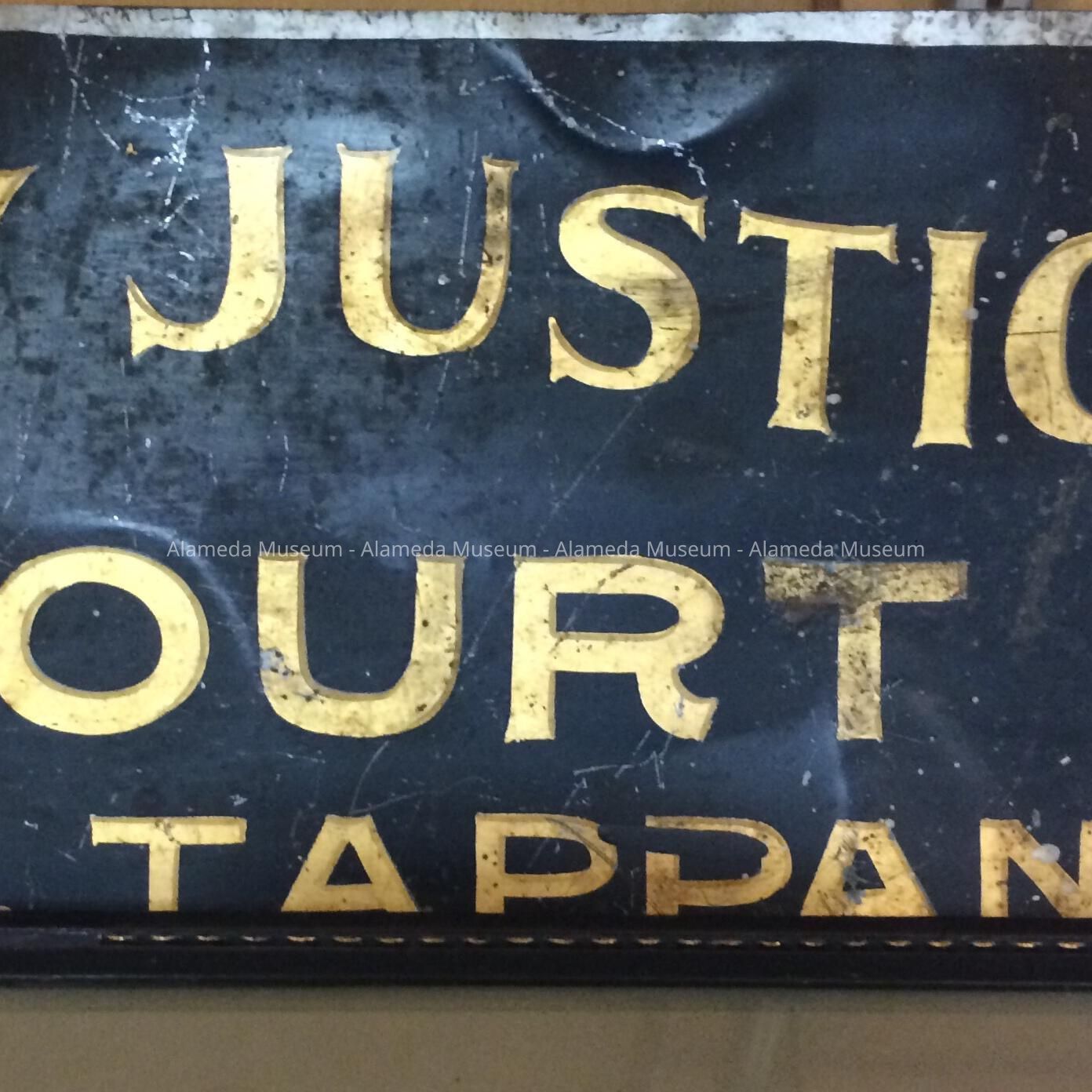 Sign "City Justice Court, R. B. Tappan", used on the door of Judge Tappan's court from 1903 to 1914, and from 1930 to 1935.