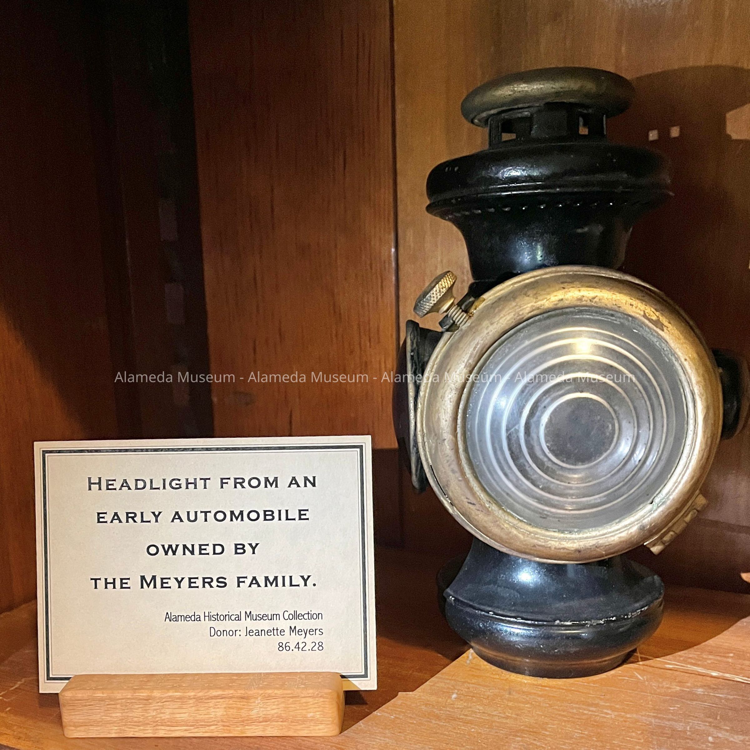 History of Object: Kerosene operated headlight from an early automobile (possibly a Cadillac) owned by the donor's father, Henry H. Meyers. Mr. Meyers was one of the earliest Alameda residents to own an automobile.