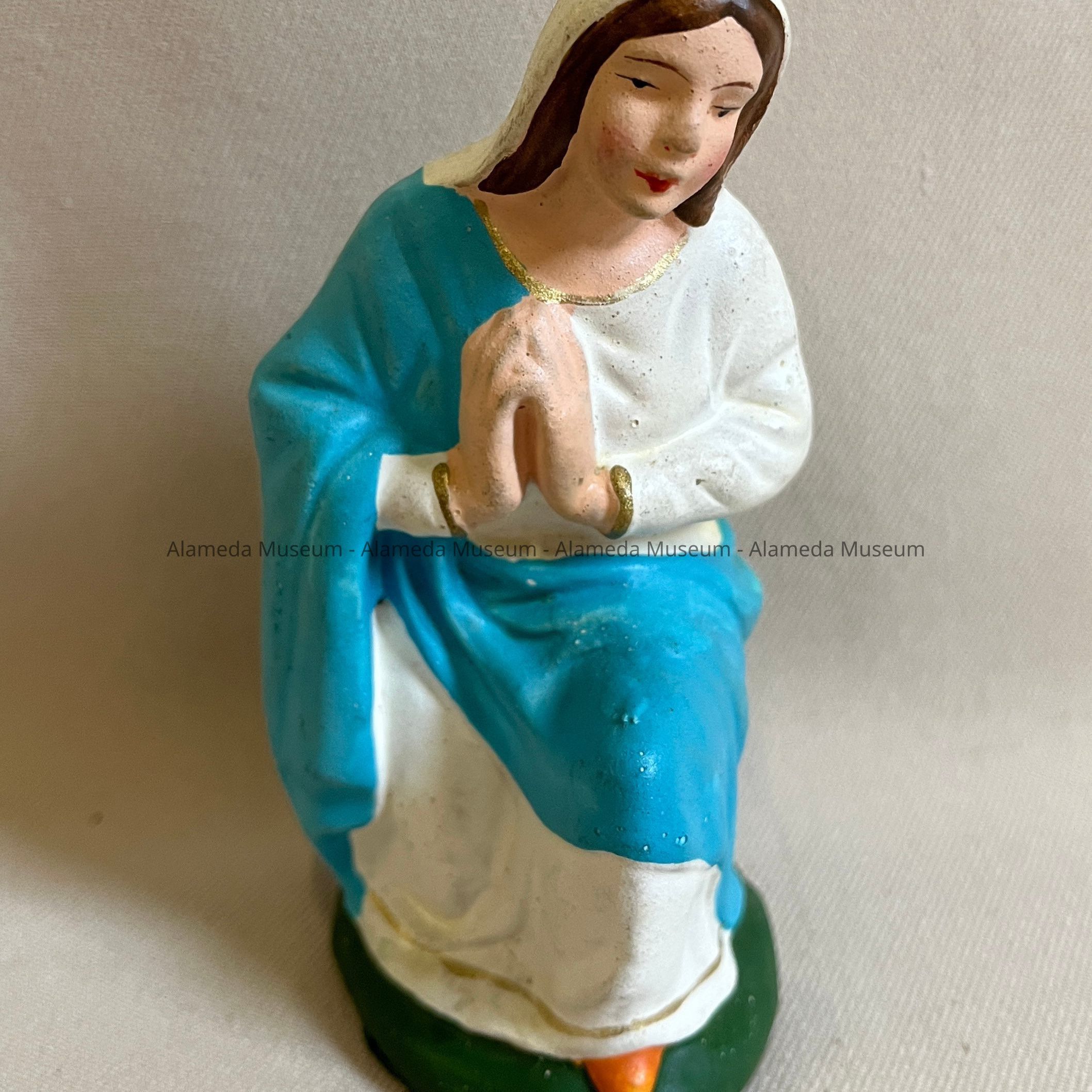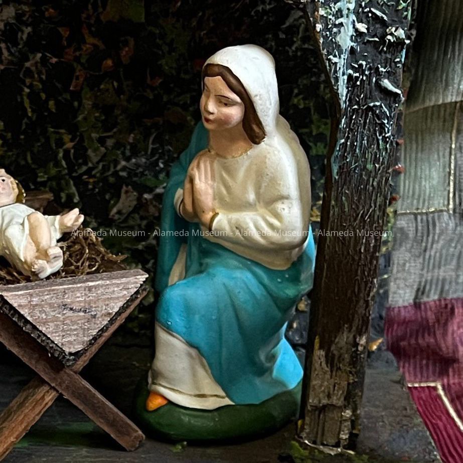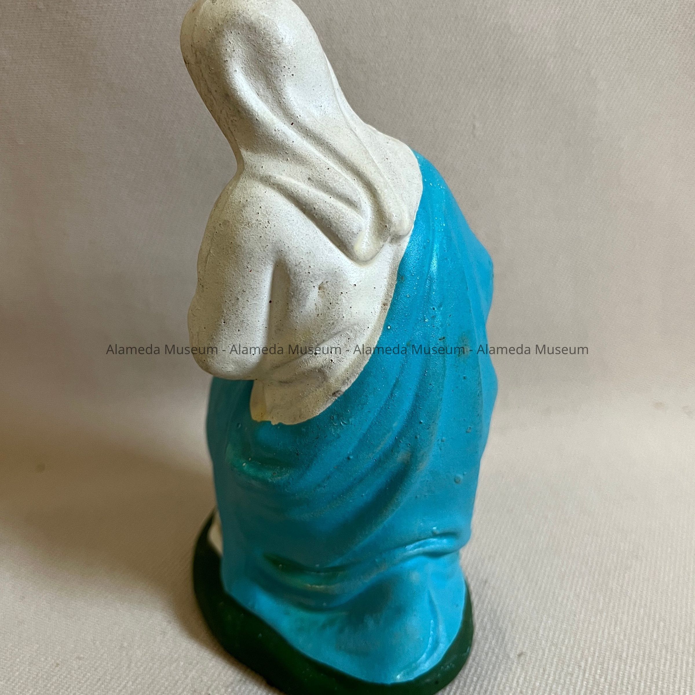 History of Object: Figurine of Mary, part of a Manger or Nativity Scene of the Martin Family, who came to Alameda in the early 1900s.