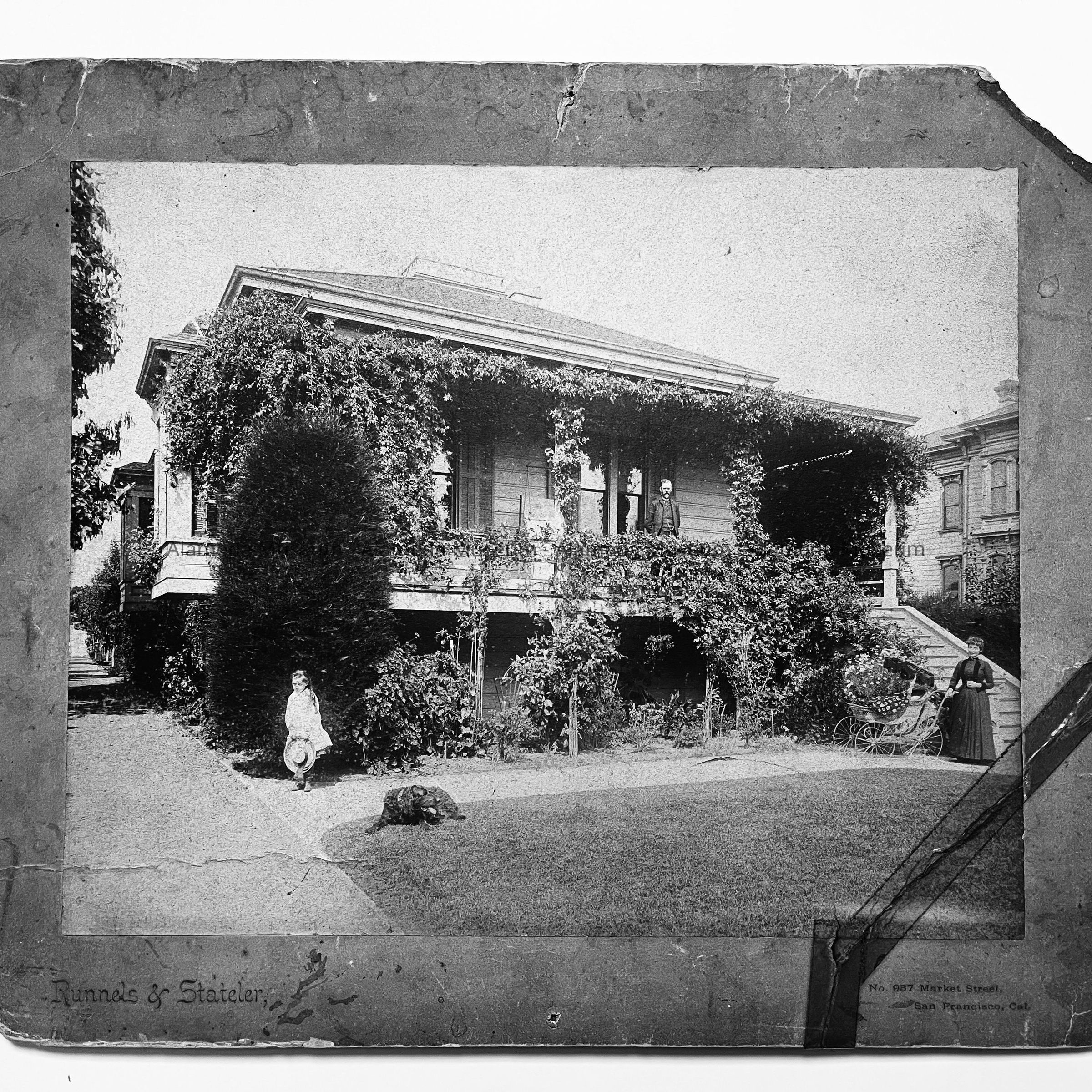 History of Object: Early photo of 1319 Pearl Street, Alameda. On the reverse side of the photo it states;