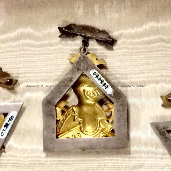 These badges belonged to members of this fraternal organization, the Alameda Chapter #49 of the Knights of Pythias, and date back to the late 19th Century.