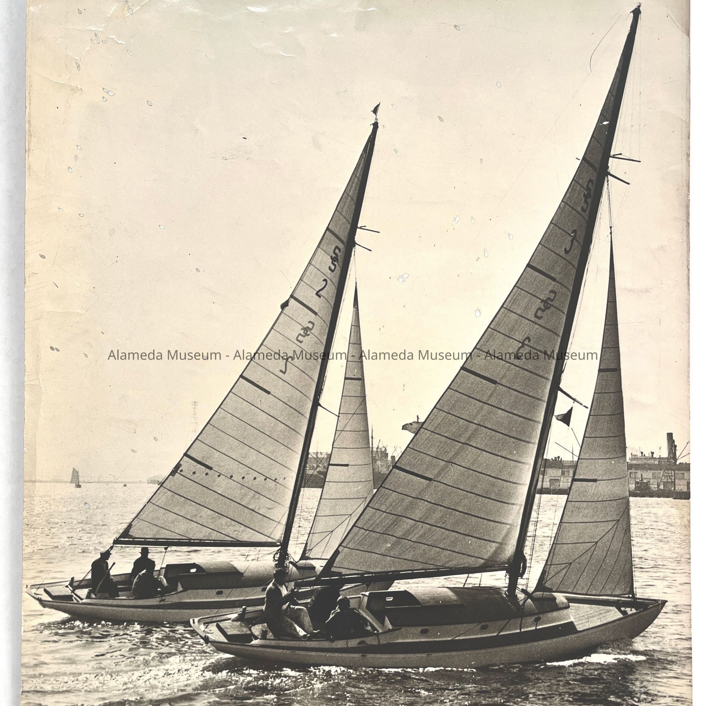 History of Object: Yachts "Markee" and "Aolus" on the Oakland Estuary at the foot of Clay Street participating in the Golden Gate Fledgling Race. The Gus Ekberg family was connected with these yachts.