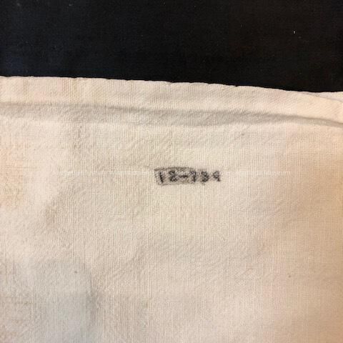 LAUNDRY BAG OF HEAVY WHITE-COLORED COTTON, WITH STENCILLED MESSAGE IN BLACK-COLORED TYPE, "ALAMEDA STEAM LAUNDRY. PHONE: AL 1600 - ALAMEDA; HAYWARD 686."