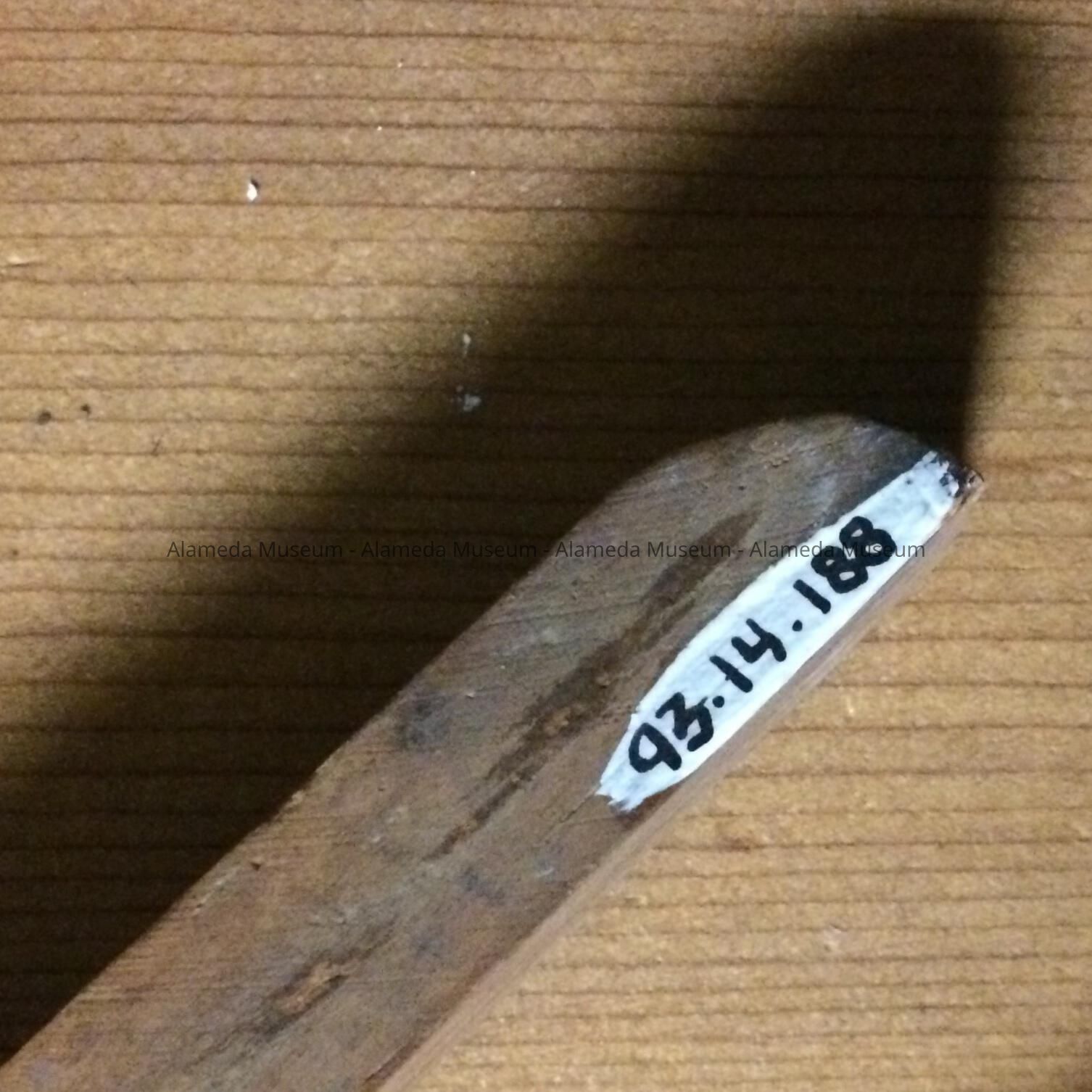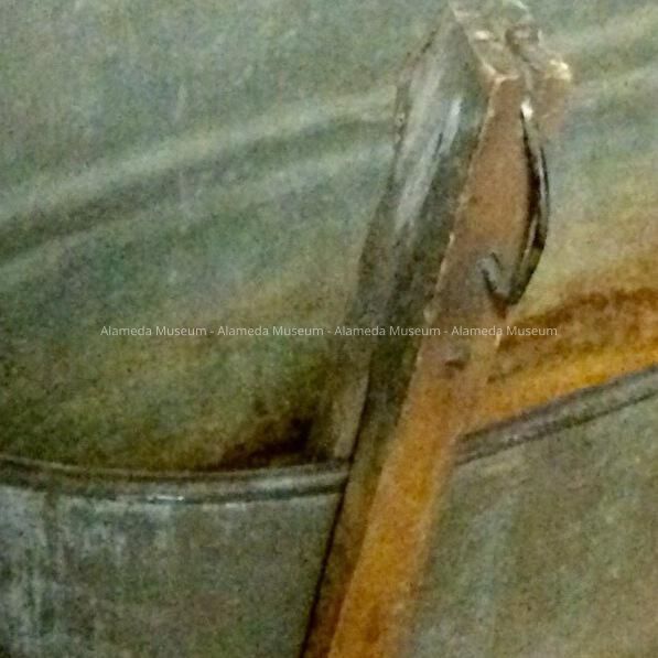 Wooden laundry tongs used to remove clothing from laundry boiler, found in basement of the Santa Clara home of Mr. & Mrs. Wm. Cox. old-time residents of the City.