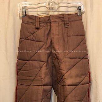 History of Object: Pants worn by Samuel M. Haslett, Jr., brother of Doris Goodman, & son of Mr. & Mrs. Samuel M. Haslett, 1605 Clinton Avenue. Pants purchased at Putzman & Hoffman, Chestnut Station, Chestnut and Encinal Avenue.