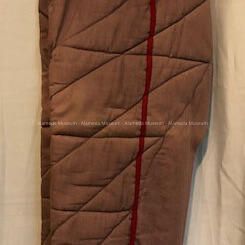 Soccer or football pants (knickers). Padded lavender colored cotton with red twill vertical stripes up sides. Original label.