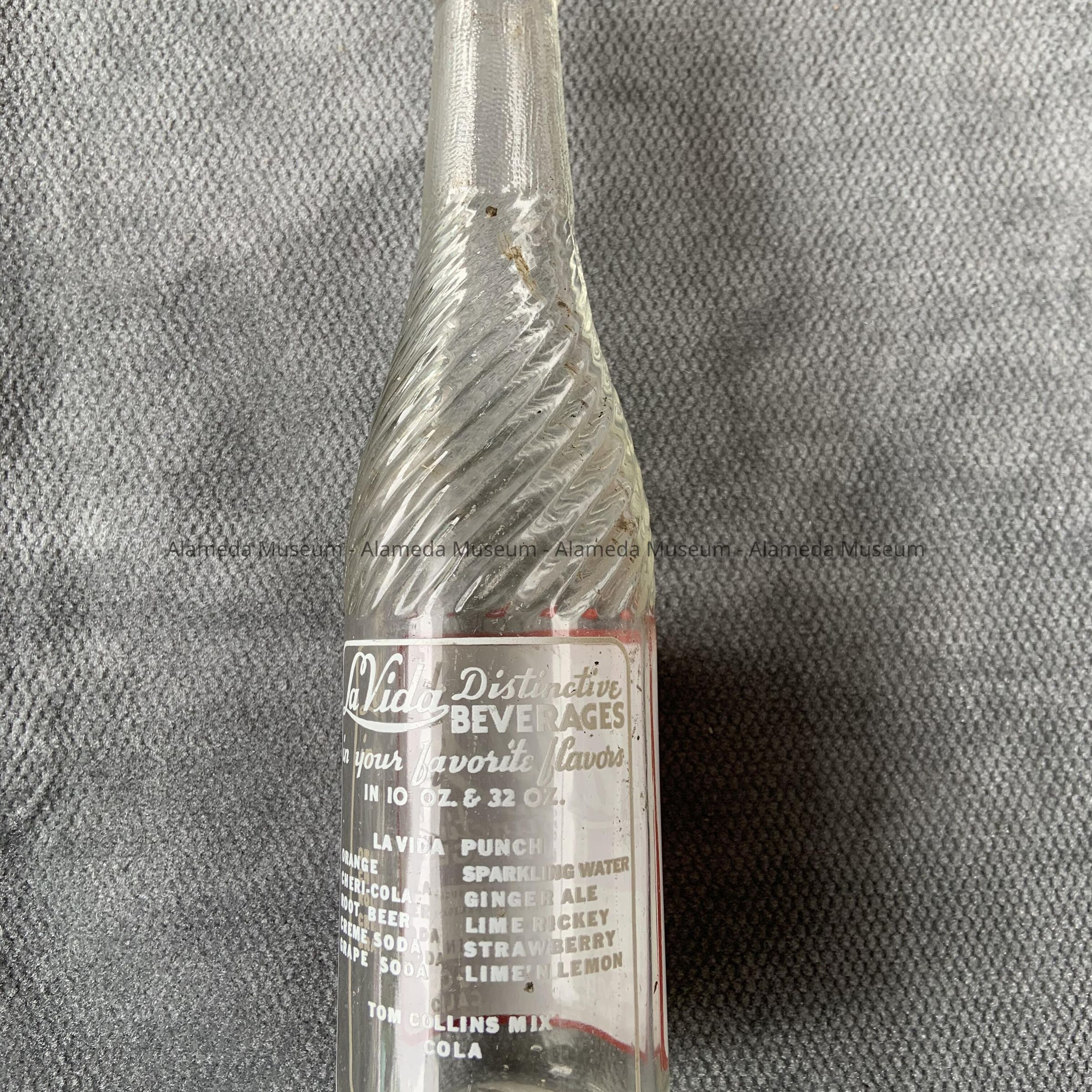 History of Object: A beverage bottle from LaVida Bottling Co., Alameda. The Otzen Bros. manufactured several soft drink beverages at their plant located at the southwest corner of Santa Clara Ave. and Oak Street (the site of the present CVS Pharmacy).