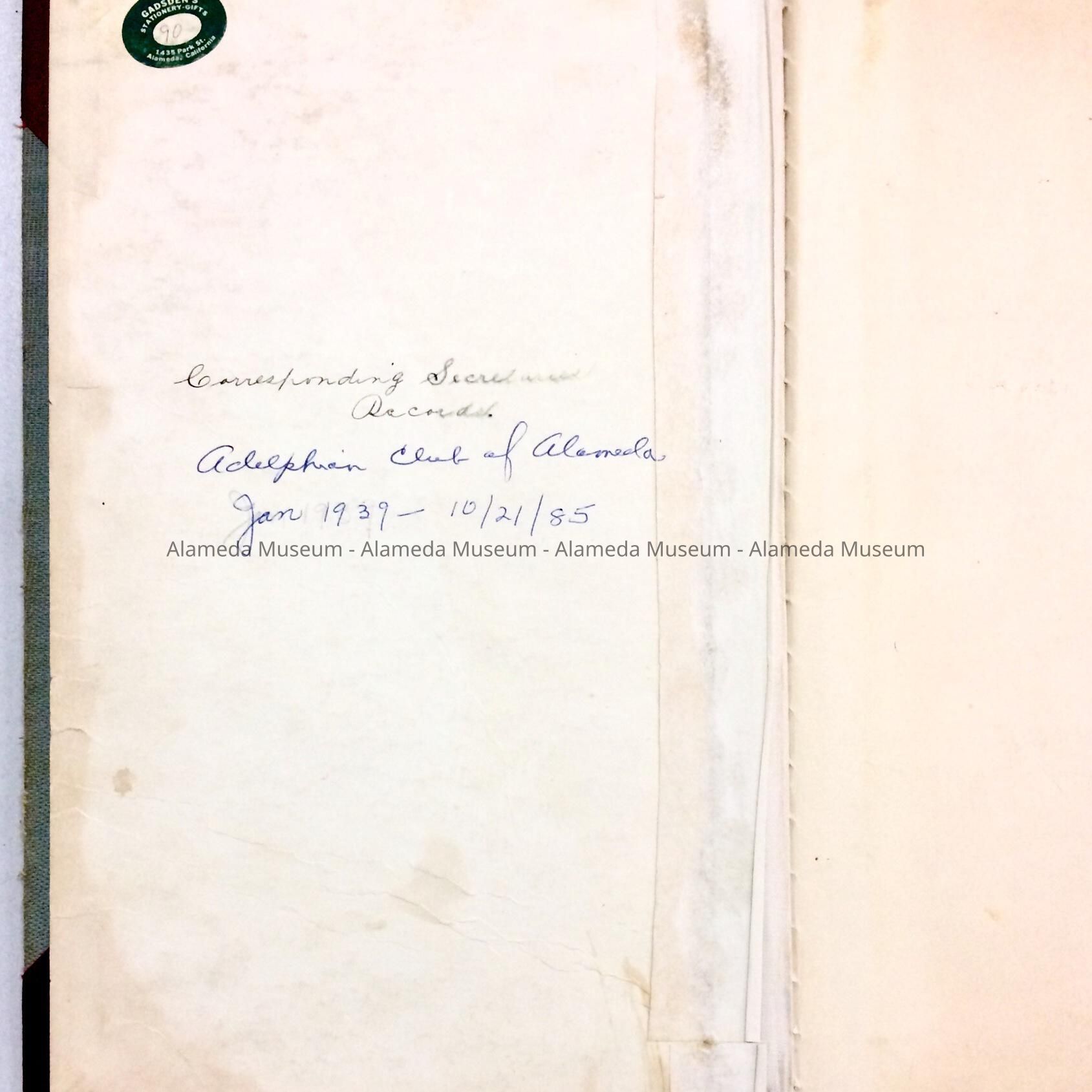 Ledger book of the Recording Secretary of the Adelphian Club, 1939-1985Entry/Object ID