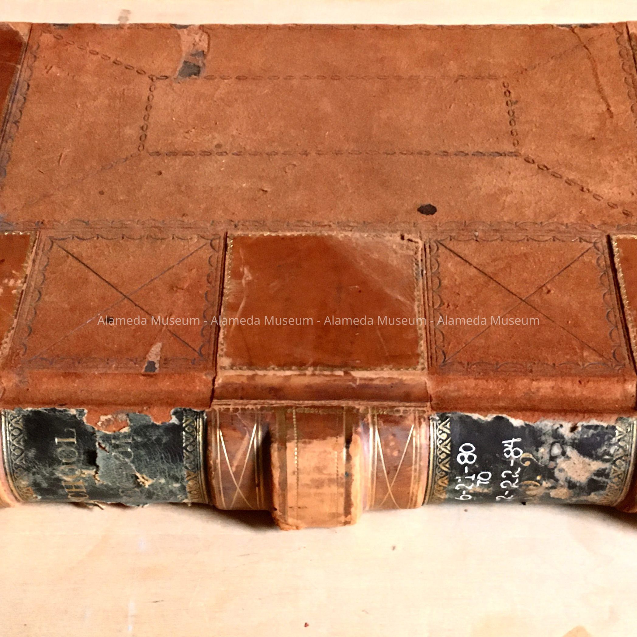 HARD-BOUND-LEDGER BOOK WITH COMBINATION LEATHER AND SUEDE COVER.