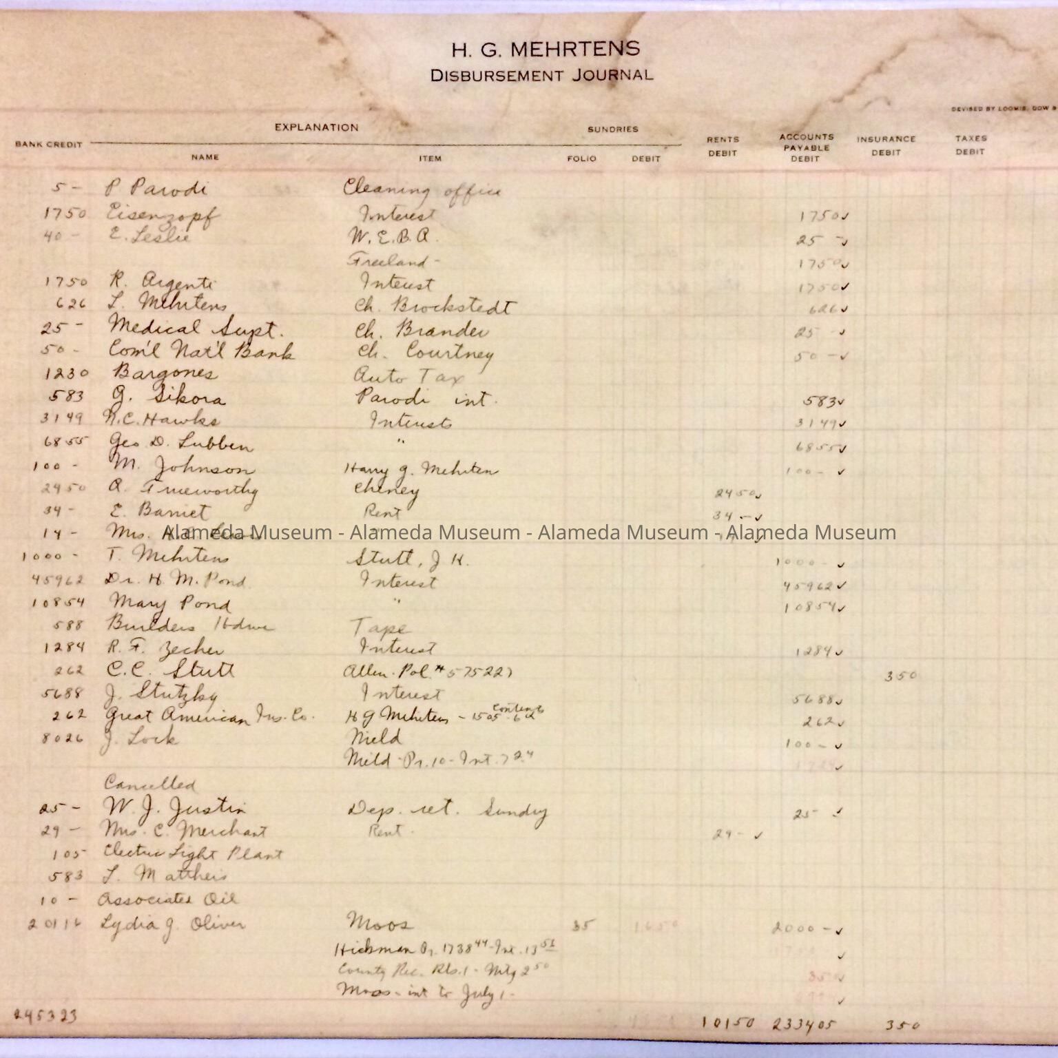 Ledger pages of H. G. Mehrtens, 1925-1927Entry/Object ID