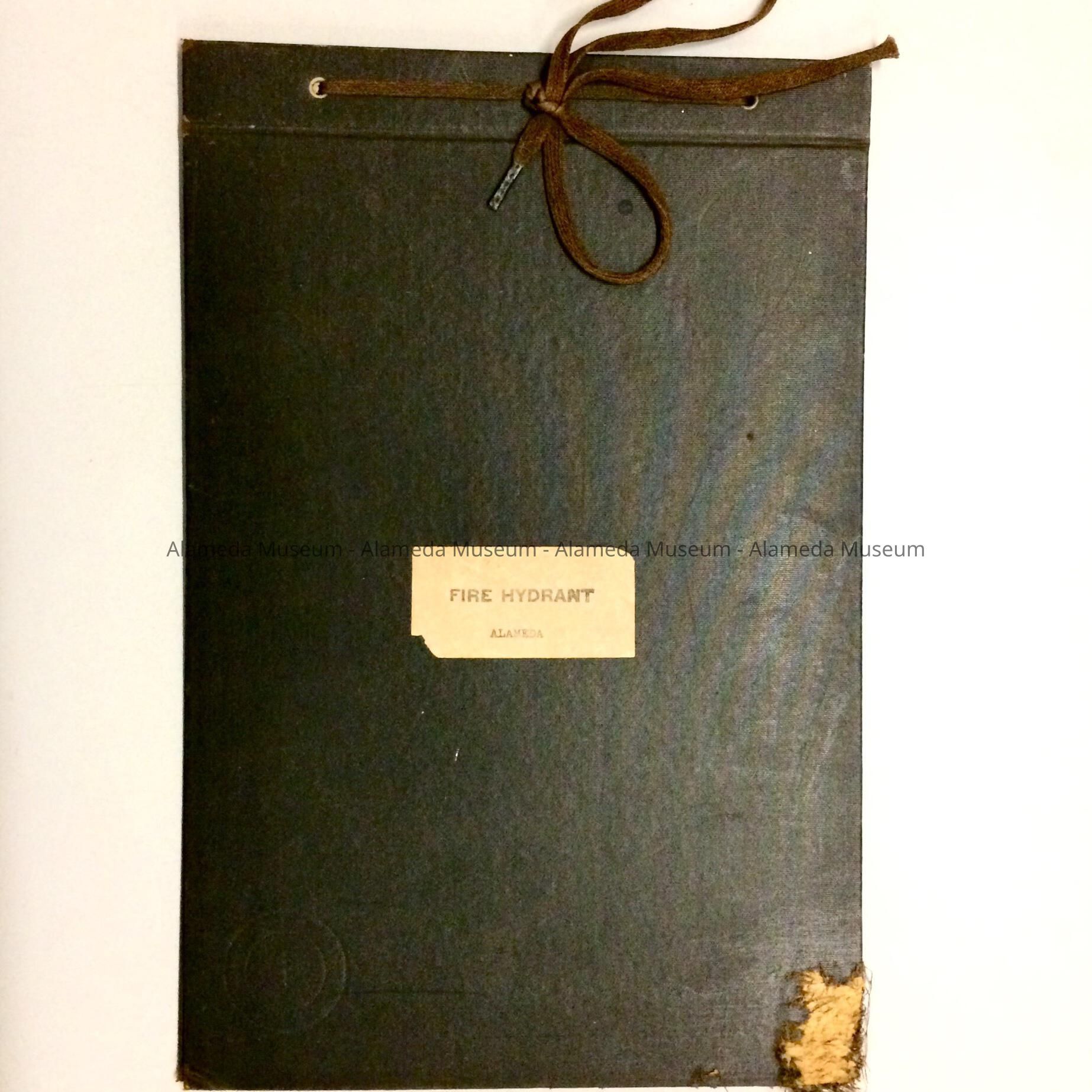 Description: Loose leaf ledger with cover of black colored buckram. Cover has attached paper label stating "Fire Hydrant Alameda”. Inside is lined paper with bold print caption "Fire Hydrants” in black type. Information written in with typewriter in blue ink.