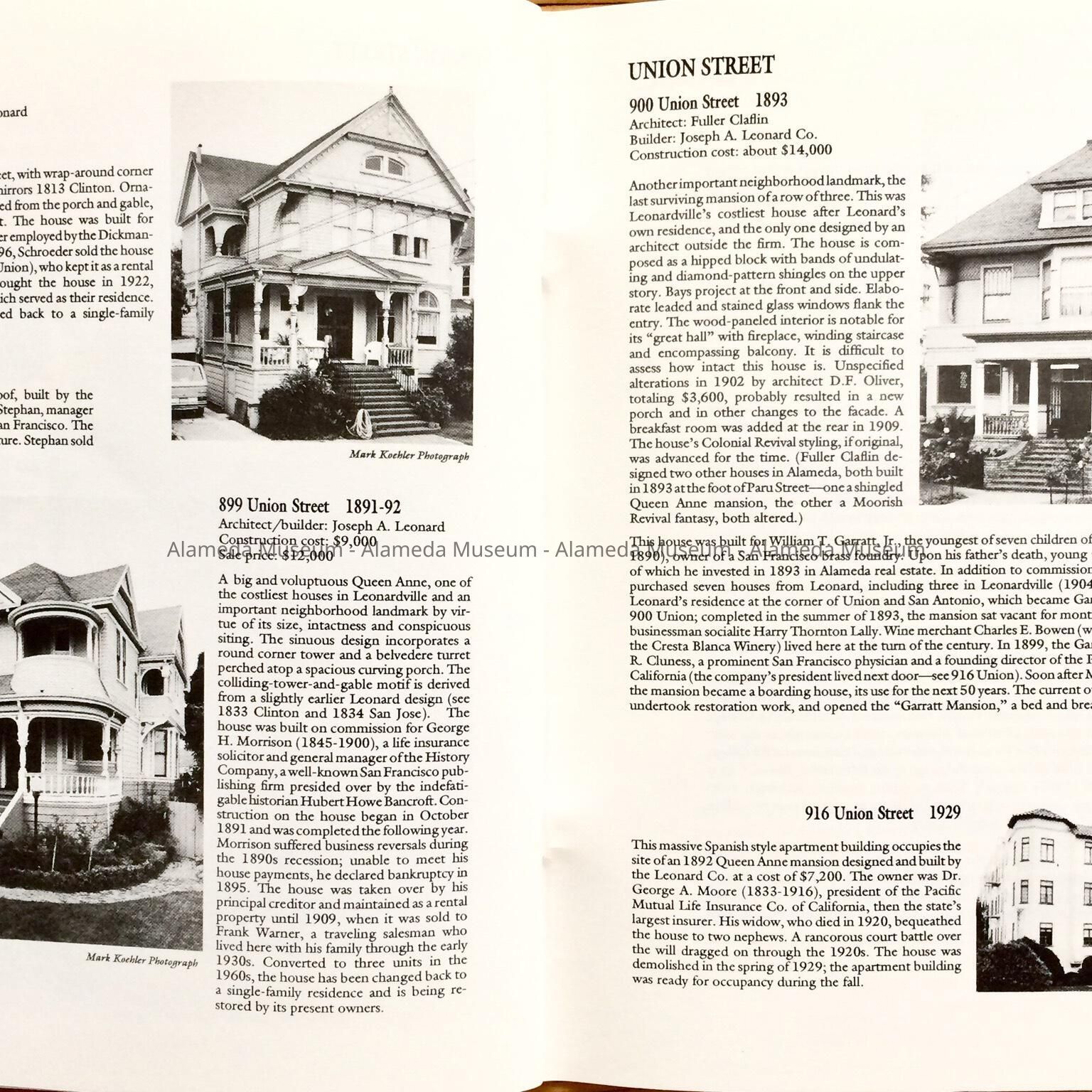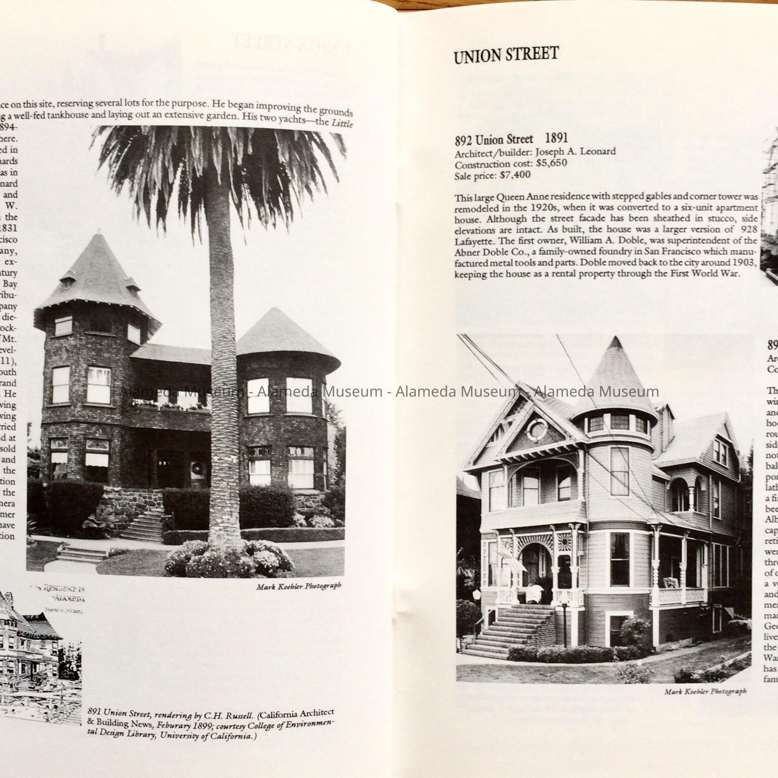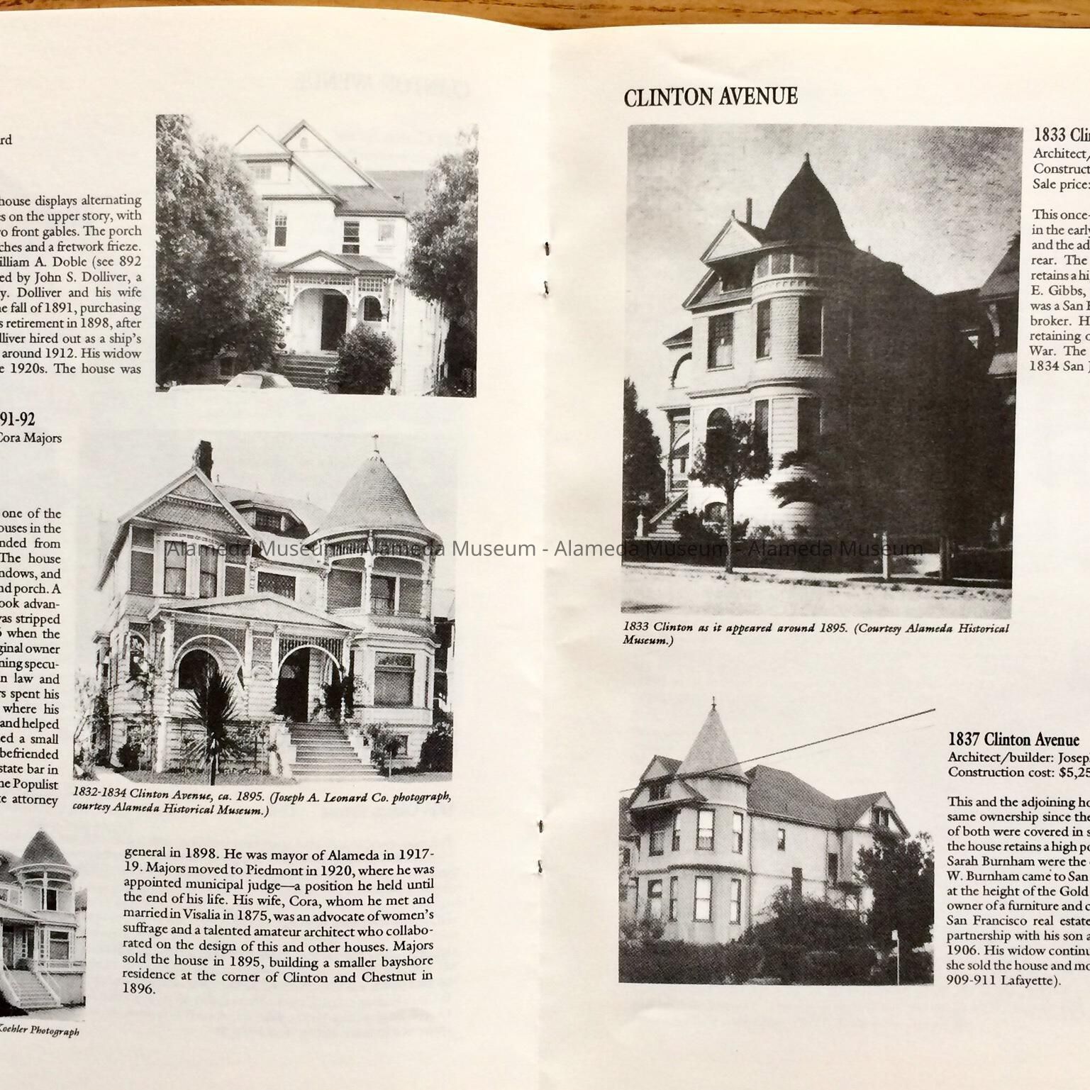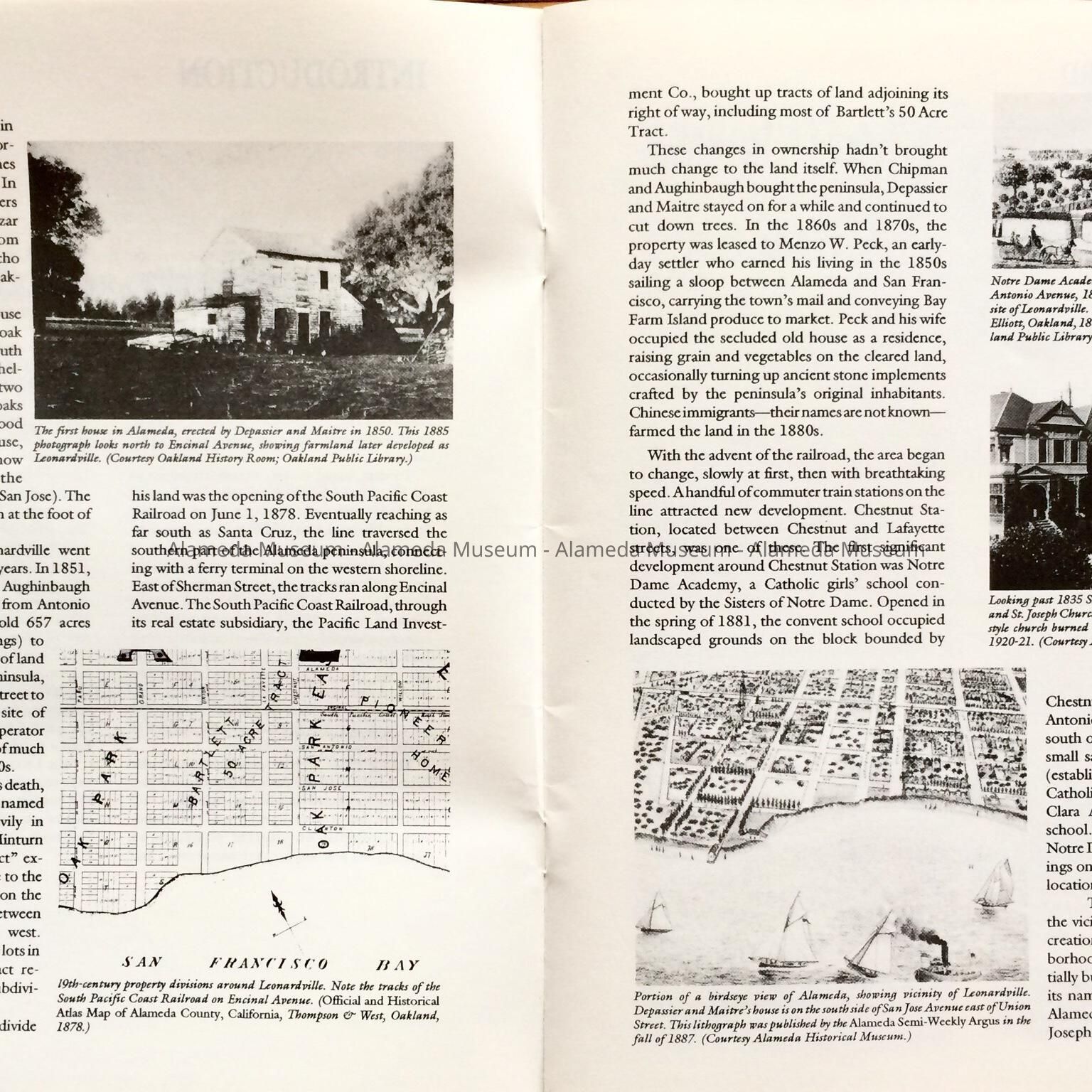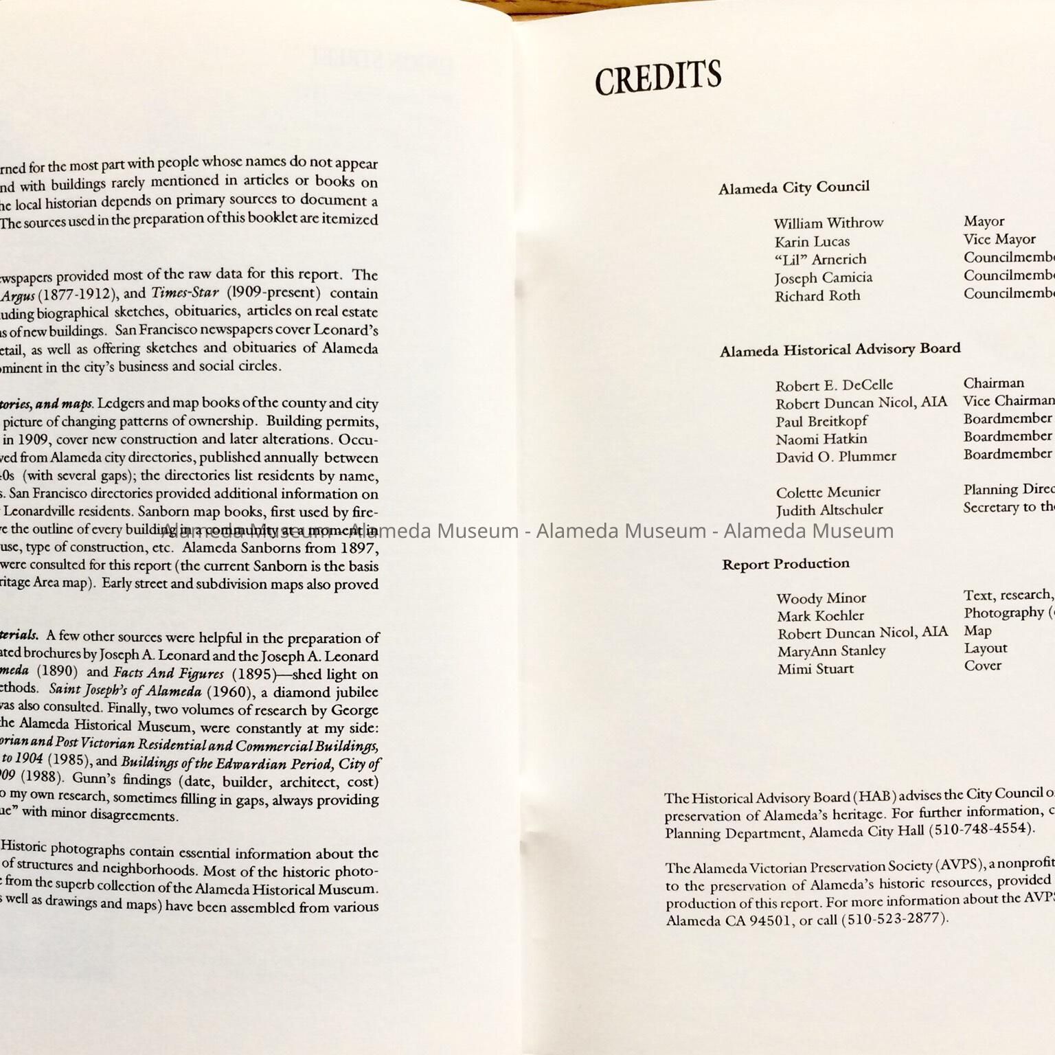 HISTORY OF OBJECT: A BOOKLET TITLED, "LEONARDVILLE, A HERITAGE AREA," BY WOODY MINOR THROUGH THE HISTORICAL ADVISORY BOARD, CITY OF ALAMEDA, 1992. THE AUTHOR WRITES ABOUT THE VICTORIAN BUILDER JOSEPH A. LEONARD AND THE HOMES HE CONSTRUCTED IN THE VICINITY OF SAINT JOSEPH CATHOLIC CHURCH.
