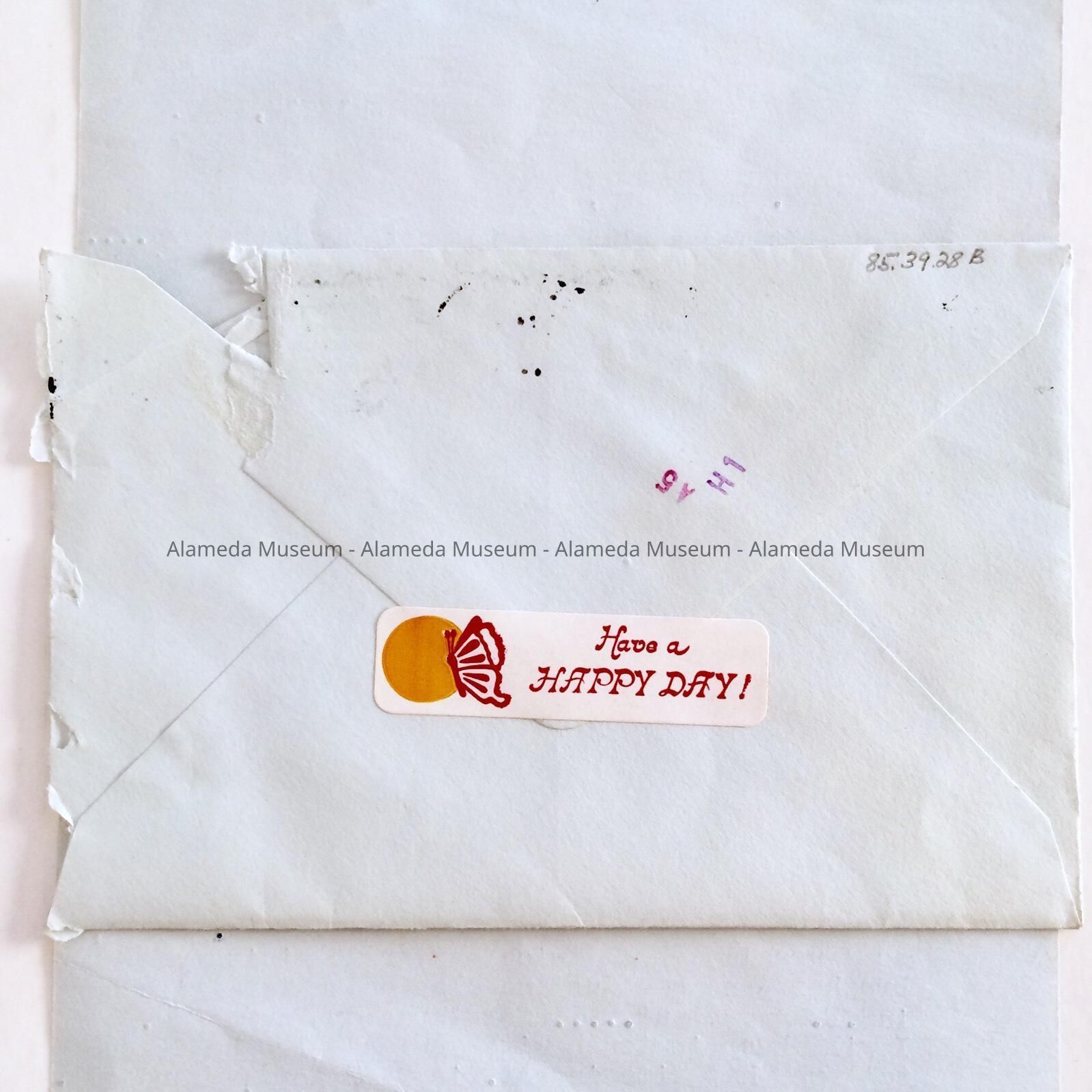 Envelope (green colored stationery). Postmarked-July 27, 1983, Los Angeles, CA.
