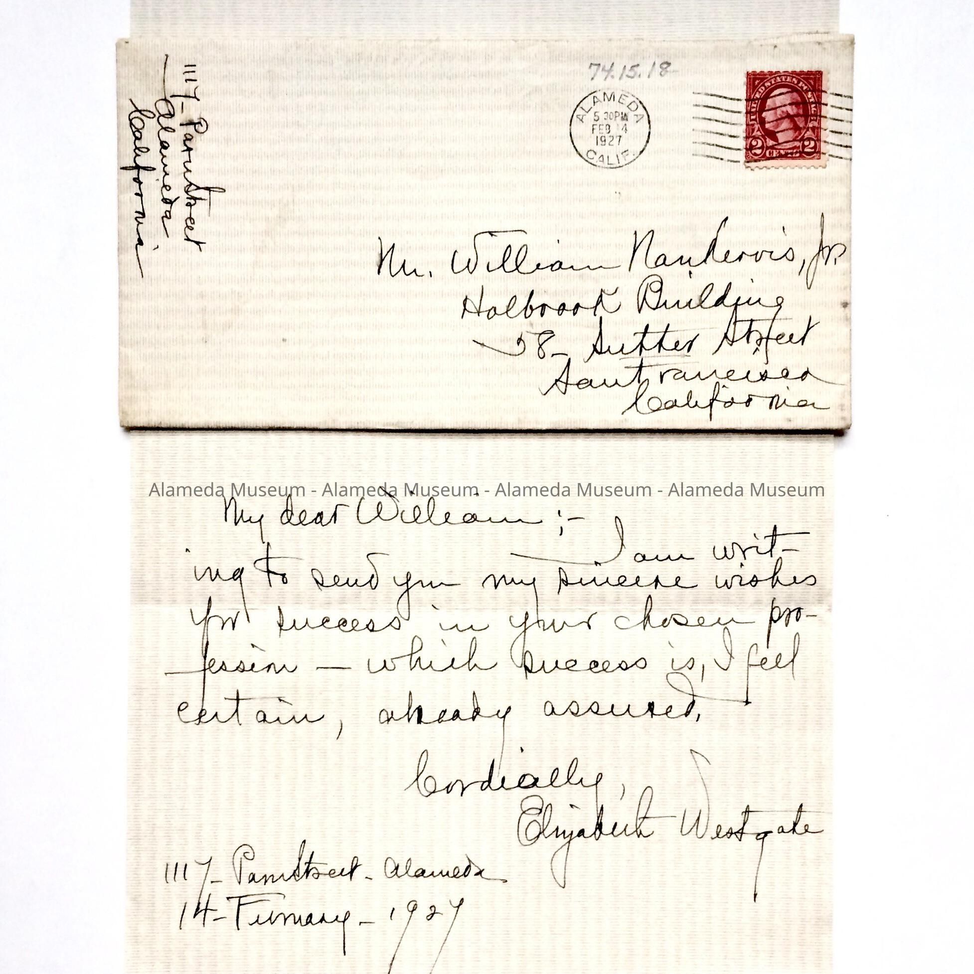 Letter of Congratulation to William Nankervis from Elizabeth Westgate, 1927Entry/Object ID
