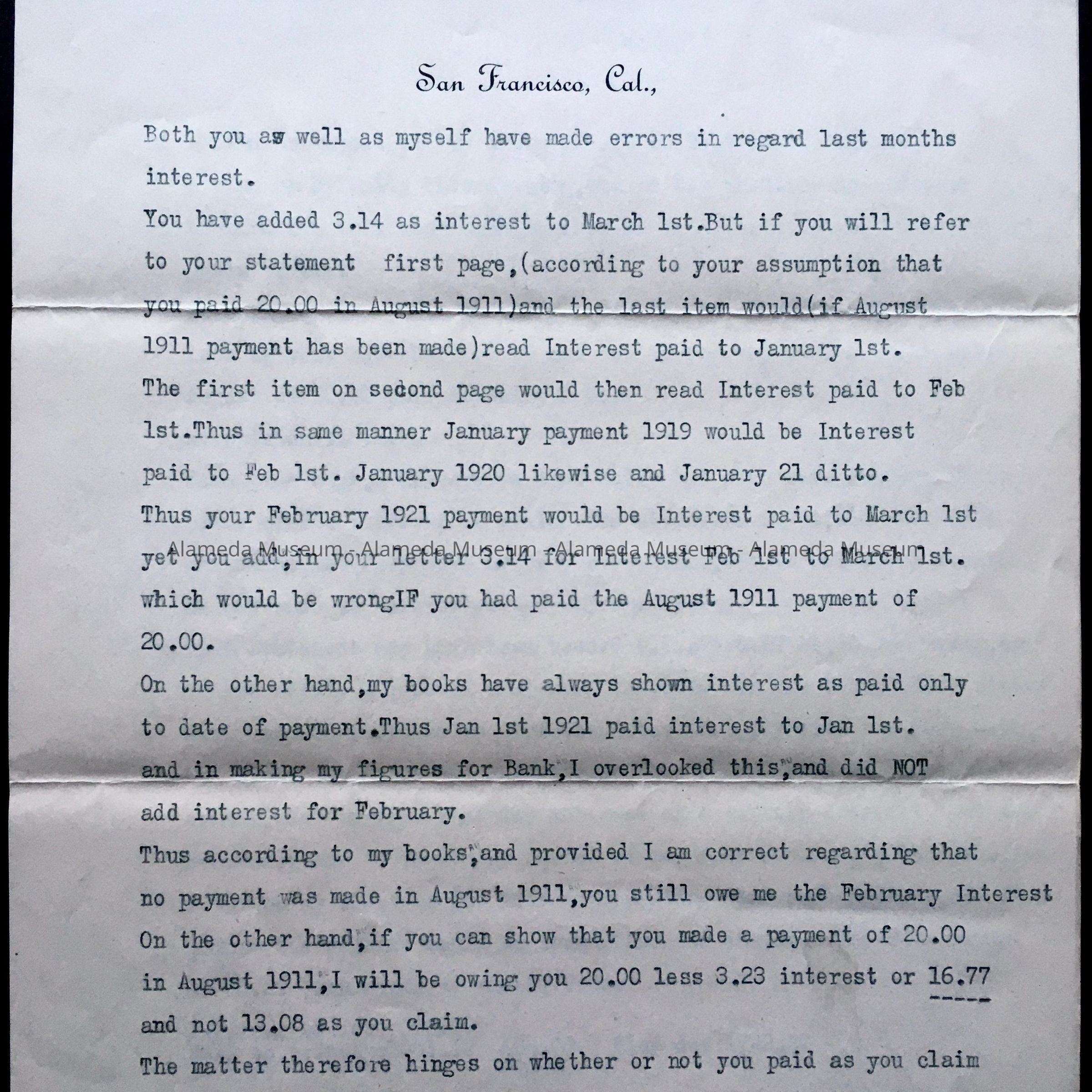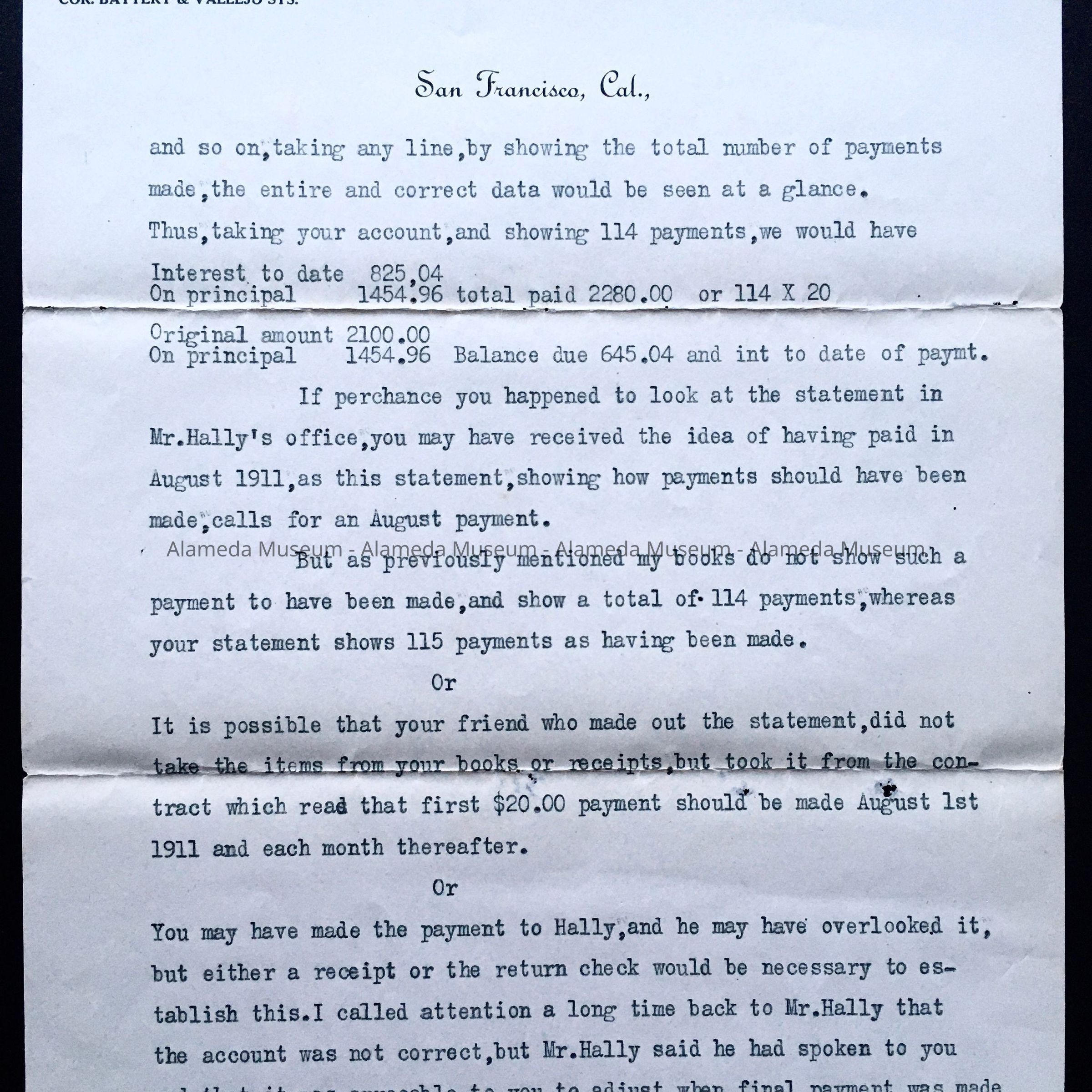 Letter regarding monthly payments on 3261 Garfield Ave, 1917Entry/Object ID