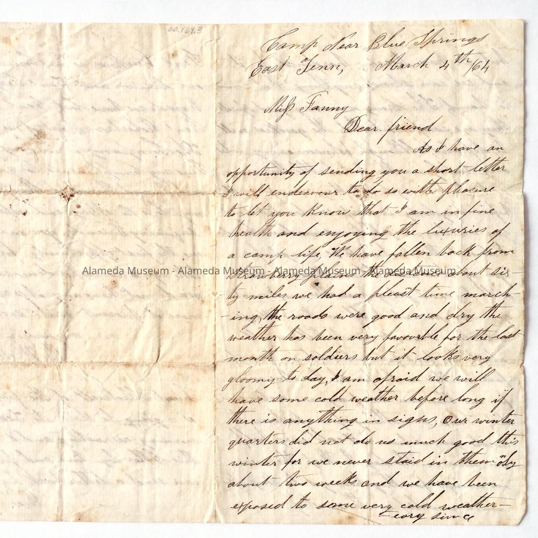 Letter to Fanny, from a Camp Near Blue Springs, East Tenn, 1864Entry/Object ID
