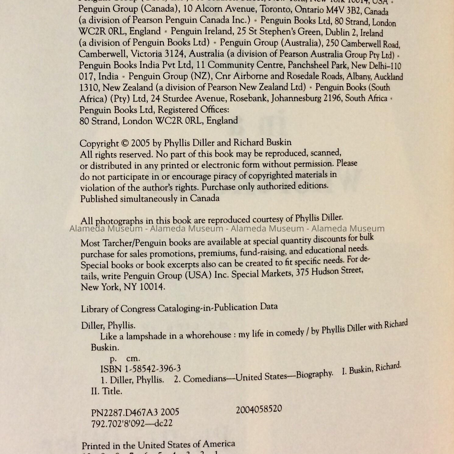 'Like a Lampshade in a Whorehouse', by Phyllis Diller, 2005Entry/Object ID