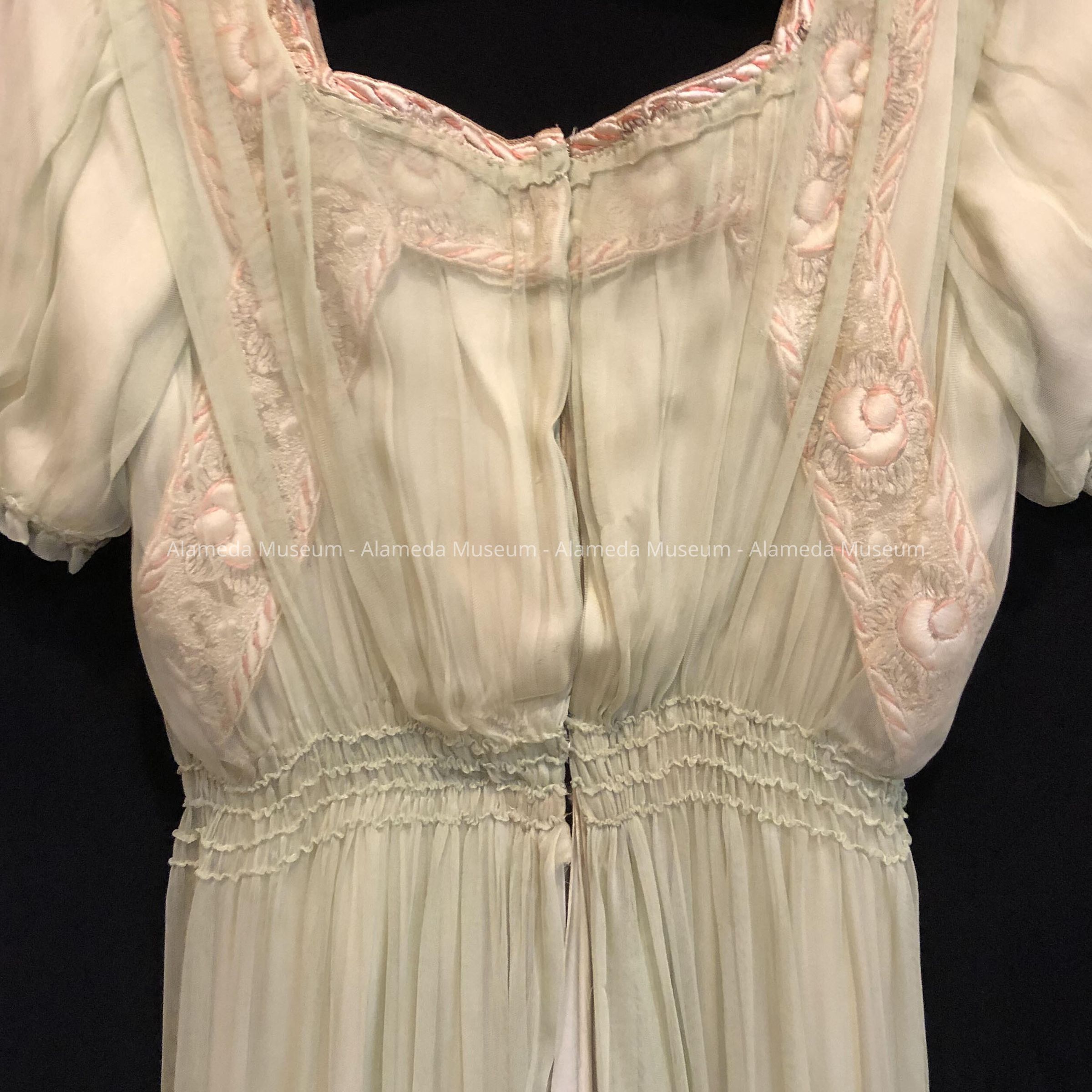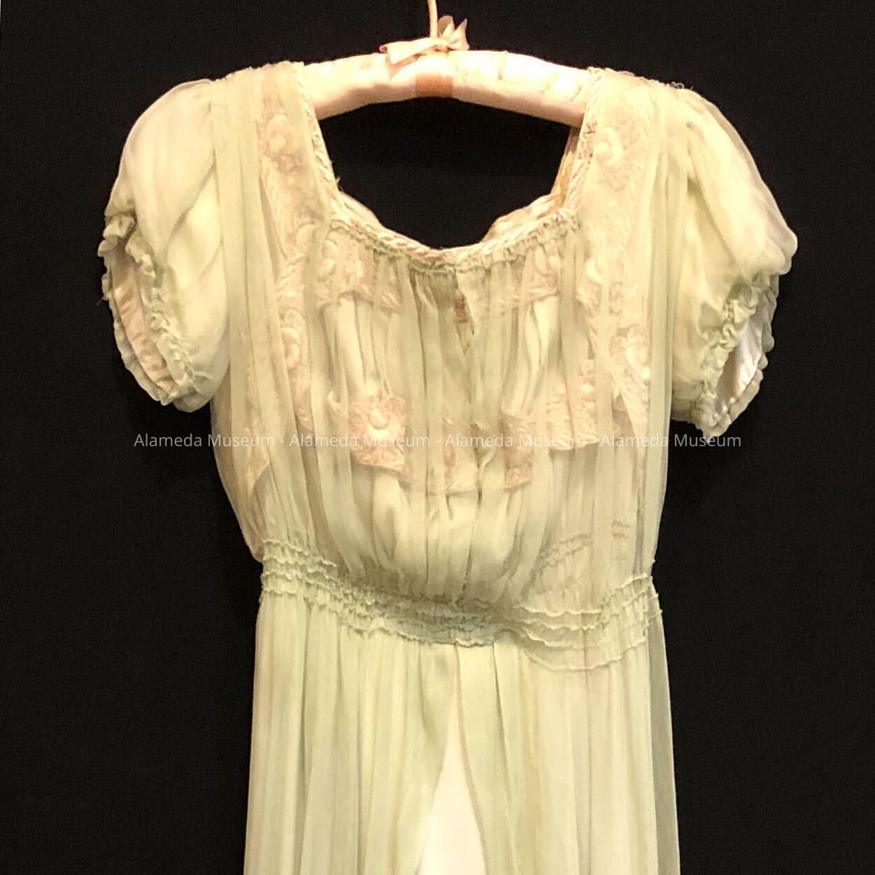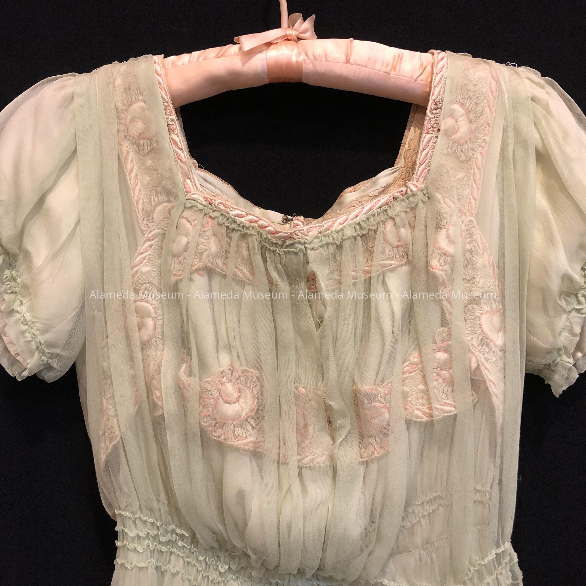 History of Object: Party dress of Roberta, daughter of Samuel & Harriet Haslett, old-time residents of Alameda. The Hasletts lived at 1605 Clinton Avenue.