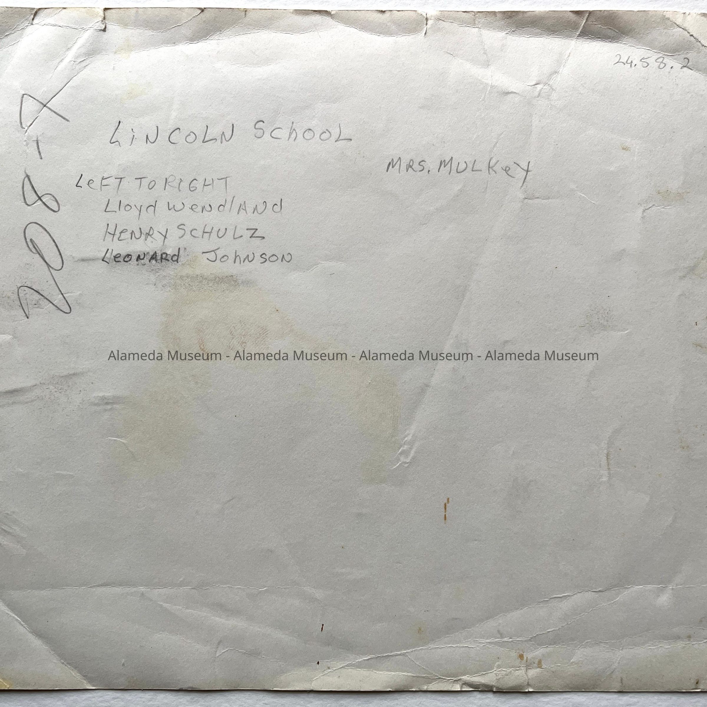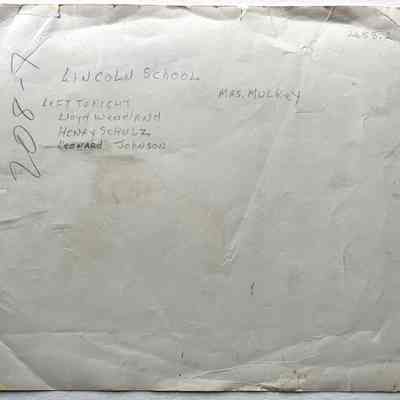 History of Object: Photo of a Lincoln school event, likely a Christmas project competition. Photo was found in the storage area intermingled in a stack of cataloged objects mostly cataloged in 2016 and 2018, without source information.