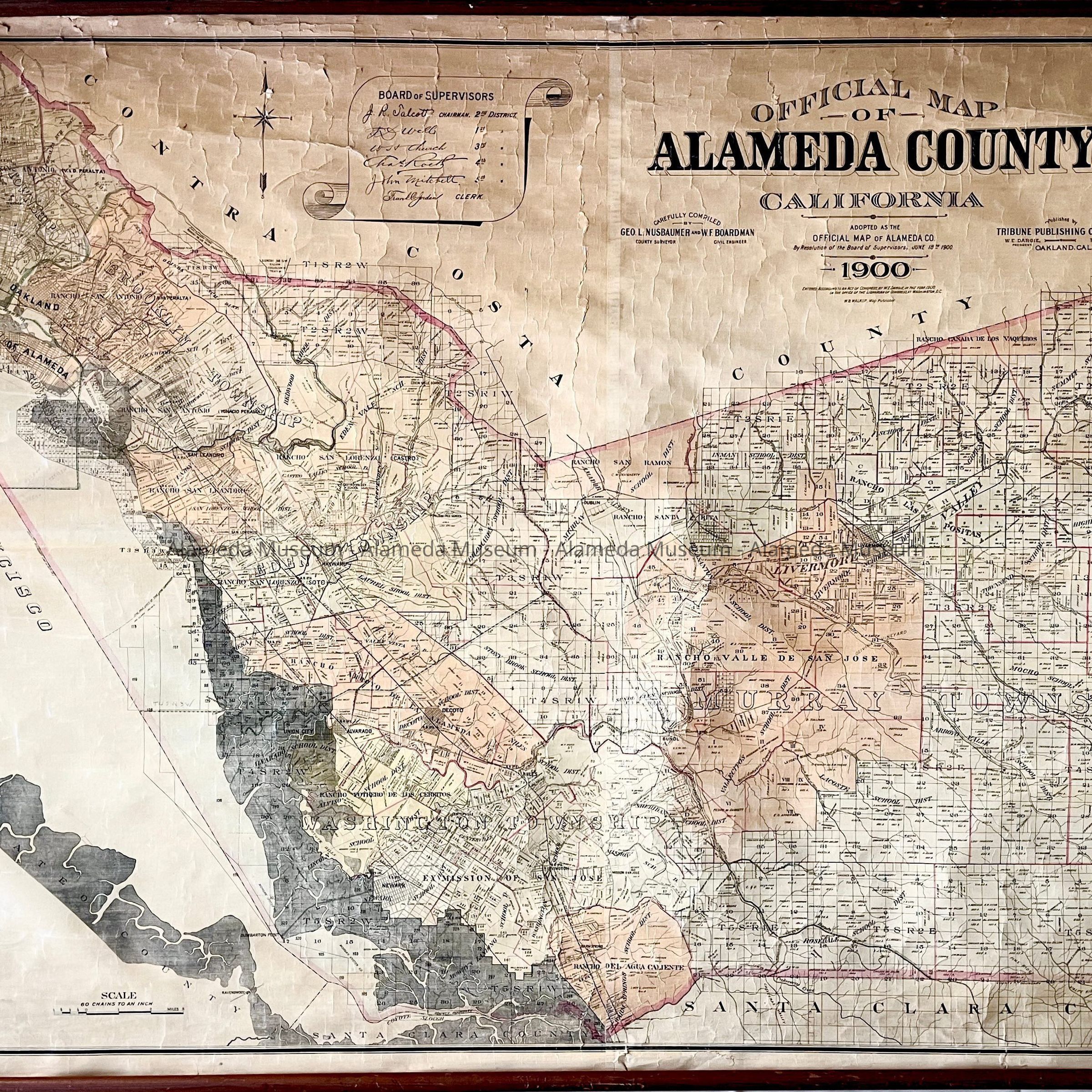 Linen-mounted Tribune Publishing Co. Alameda County map, c. 1900Entry/Object ID