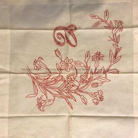 Linen pillow shams with red flowers from the Chambers family, early 1900sEntry/Object ID