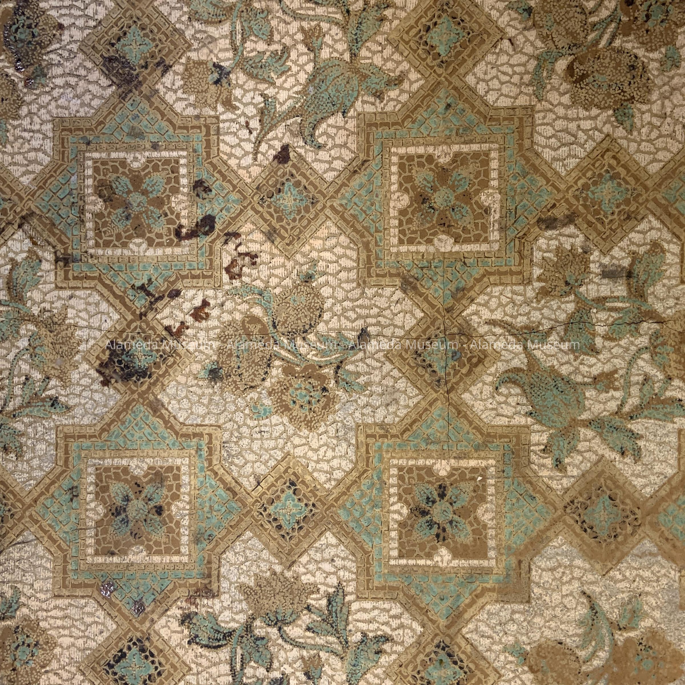 History of Object: Early linoleum from 1405 Caroline Street, Alameda, erected 1893, and occupied by the Thomas family, circa 1896 to 1981.