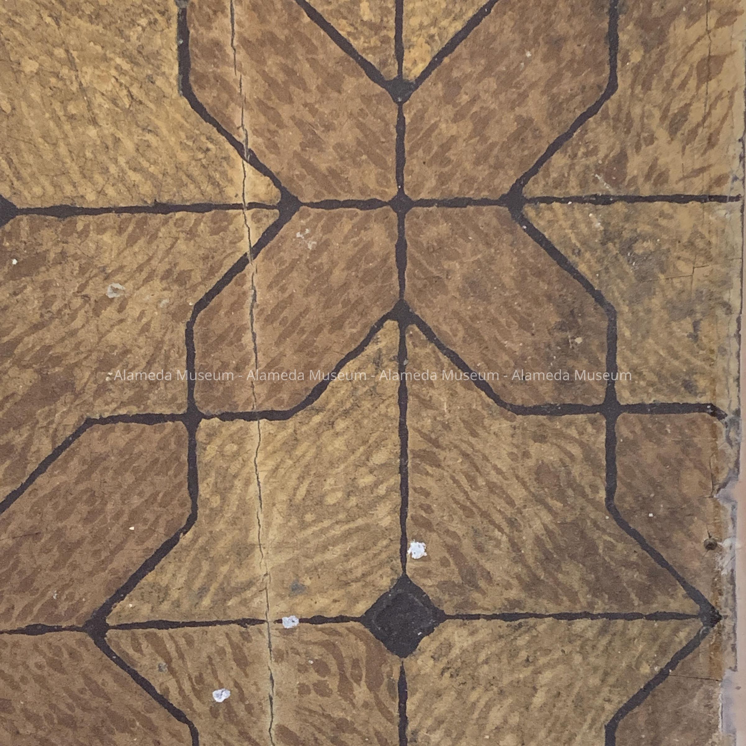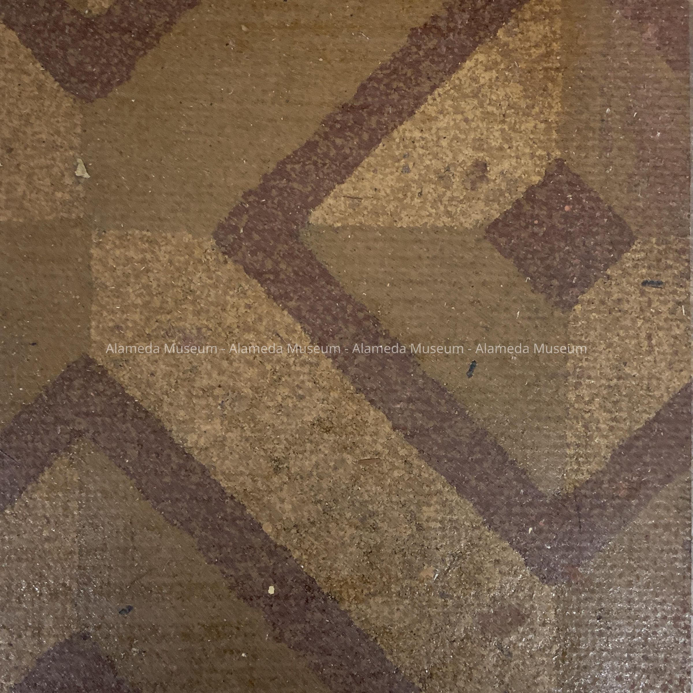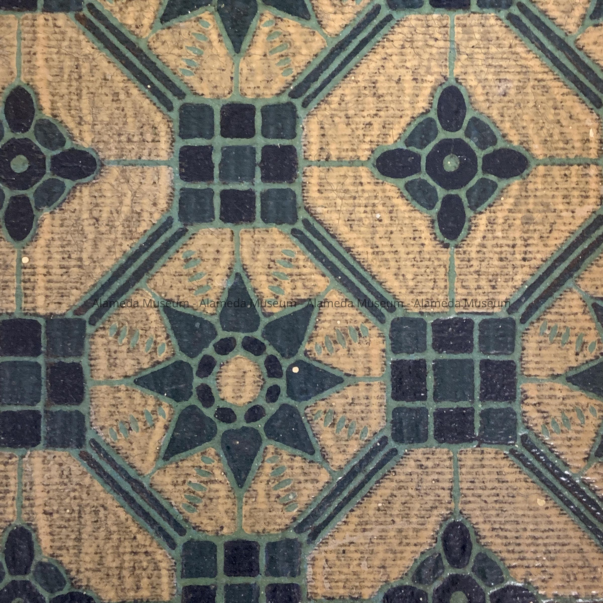 HISTORY OF OBJECT: ORIGINAL LINOLEUM REMOVED FROM THE FLOORS OF 1310 SAN ANTONIO AVENUE, ALAMEDA. A CRAFTSMAN STYLE RESIDENCE, CIRCA 1910. EARLIEST KNOWN OWNER, MR. FAUST, A CABINET MAKER BY TRADE.