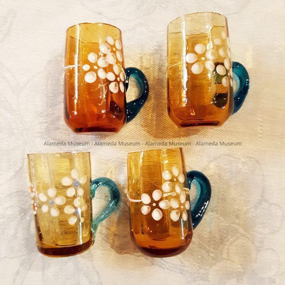 Liqueur Set of amber glass with blue handle and enameled flowers, 1900Entry/Object ID