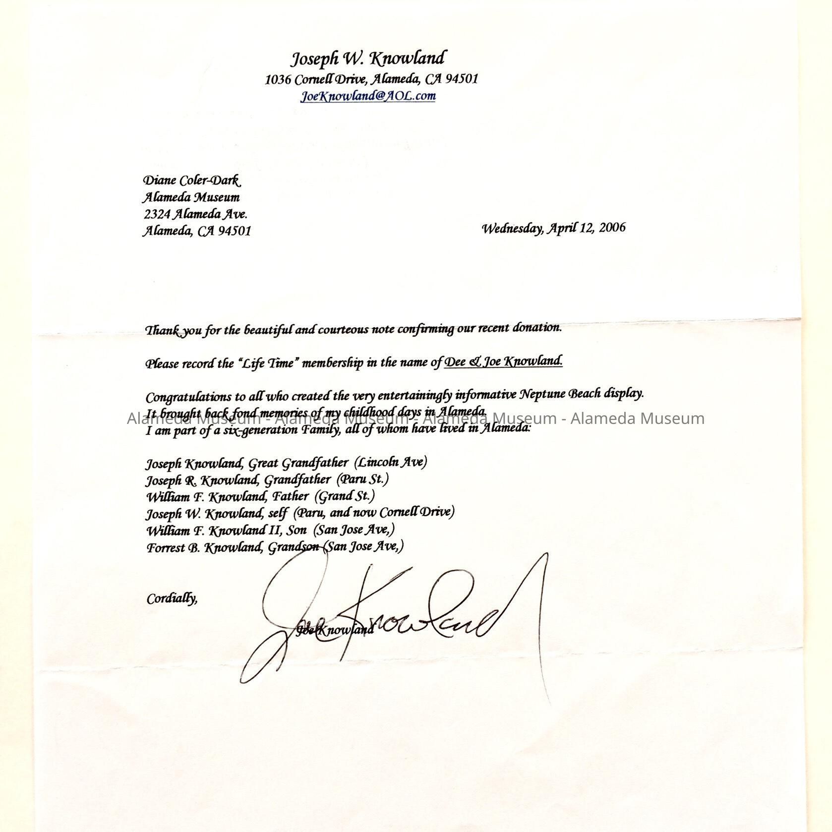 Listing of male descendants of Joseph W. Knowland, 2006Entry/Object ID