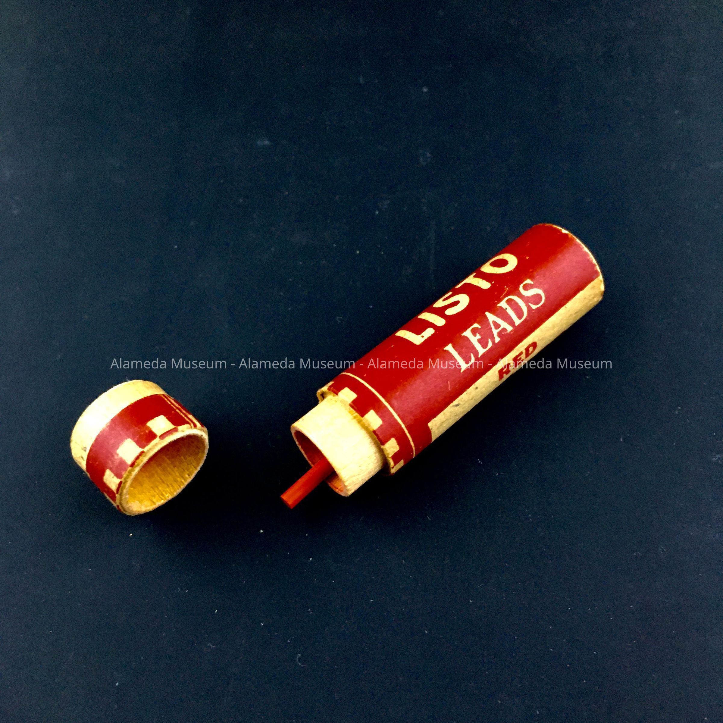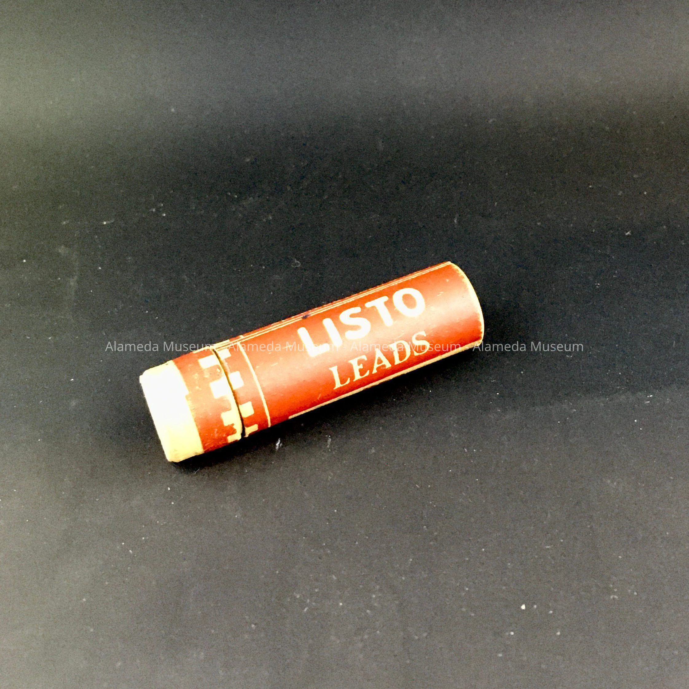 LISTO LEAD IN CONTAINER, SIGNED "LISTO PENCIL CORPORATION, ALAMEDA, CALIFORNIA." THE LISTO PENCIL CORPORATION WAS LOCATED OFF BUENA VISTA NEAR GRAND STREET IN ALAMEDA.