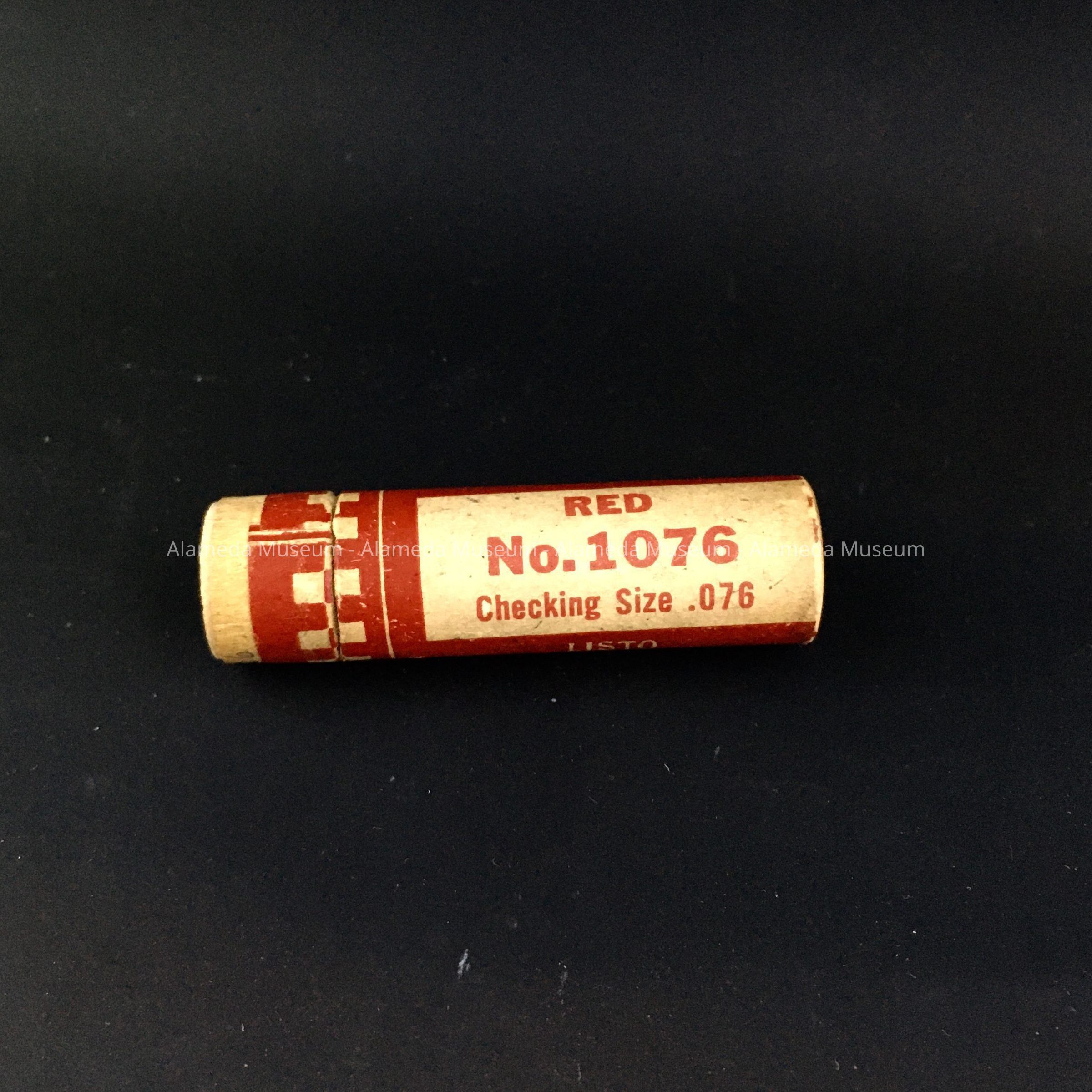 RED-COLORED LEAD IN AN OBLONG-SHAPED WOODEN CONTAINER, WITH RED- AND WHITE-COLORED PAPER LABEL. BOLD-PRINTED CAPTION READS, "LISTO LEADS." RED NO. 1076.