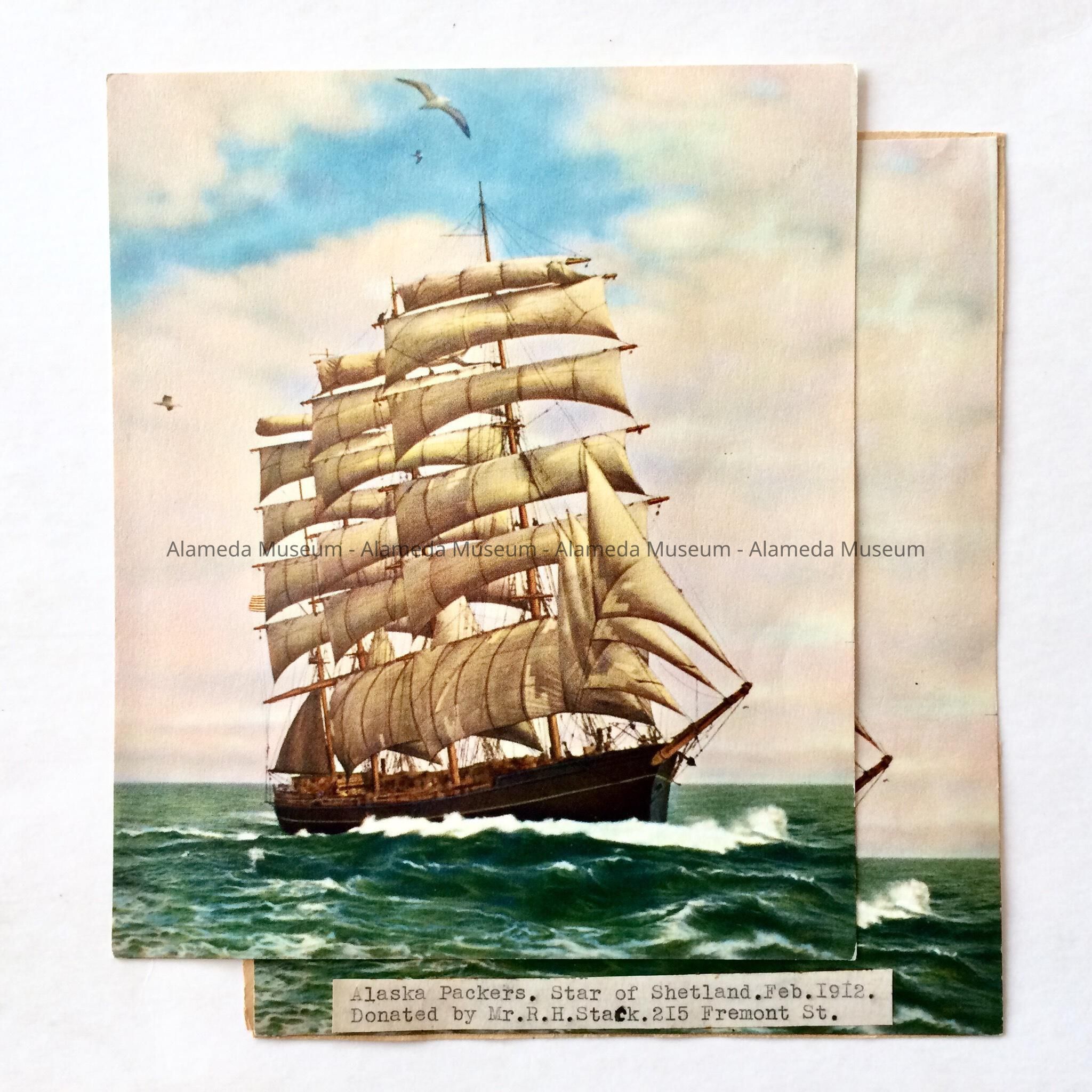 History: Lithographs in color depicting the Alaska Packers ship Star of Shetland.