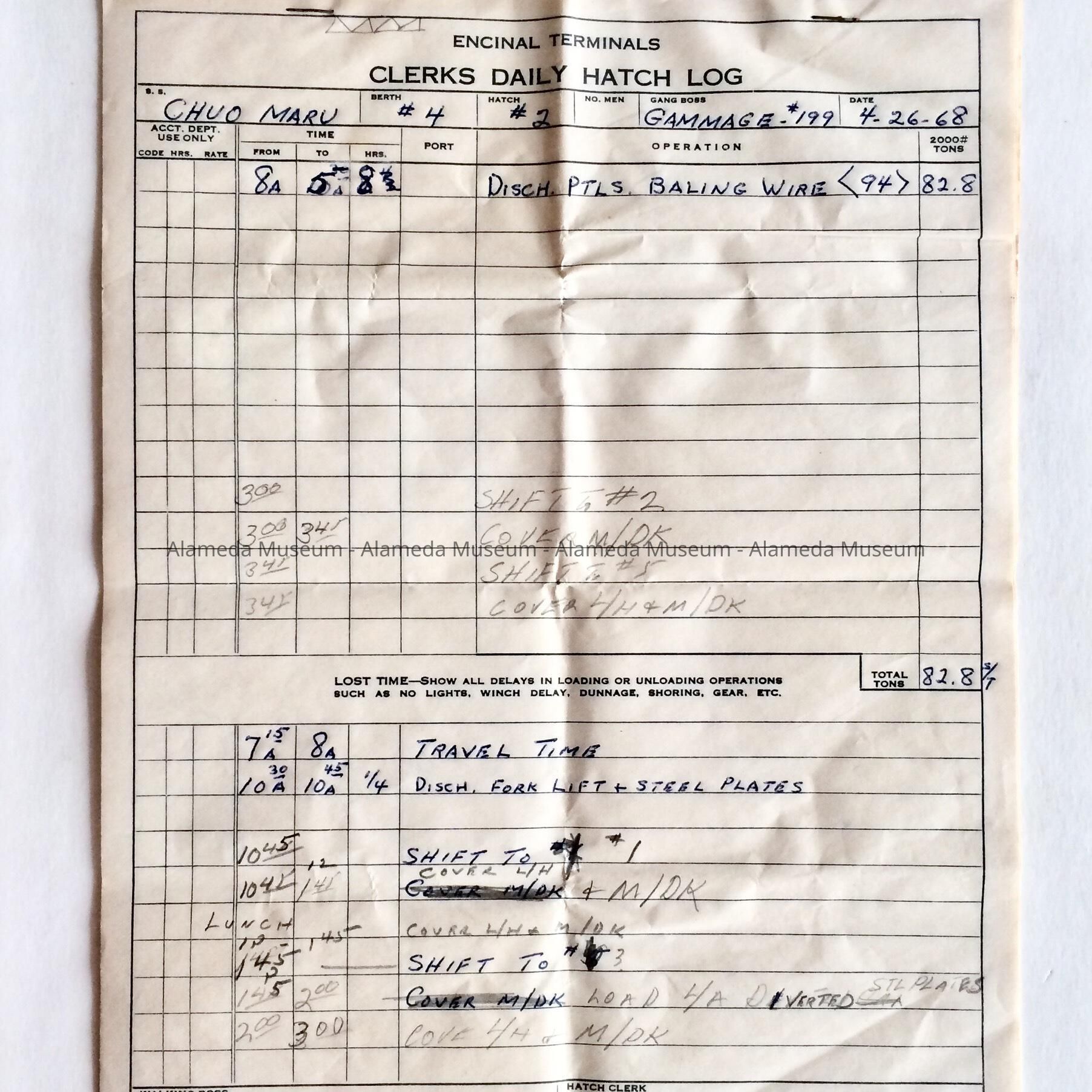 Log forms from Encinal Terminals, 1968Entry/Object ID