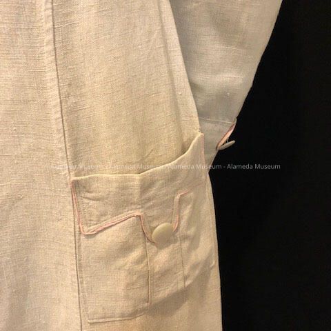 Long sleeved Beige linen auto duster with mother-of-pearl buttons at cuffs, c. 1912-1913Entry/Object ID