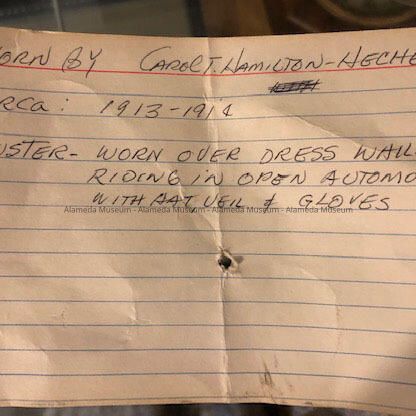 Auto duster worn by Carol Tripp Hamilton Heche, as a young lady.