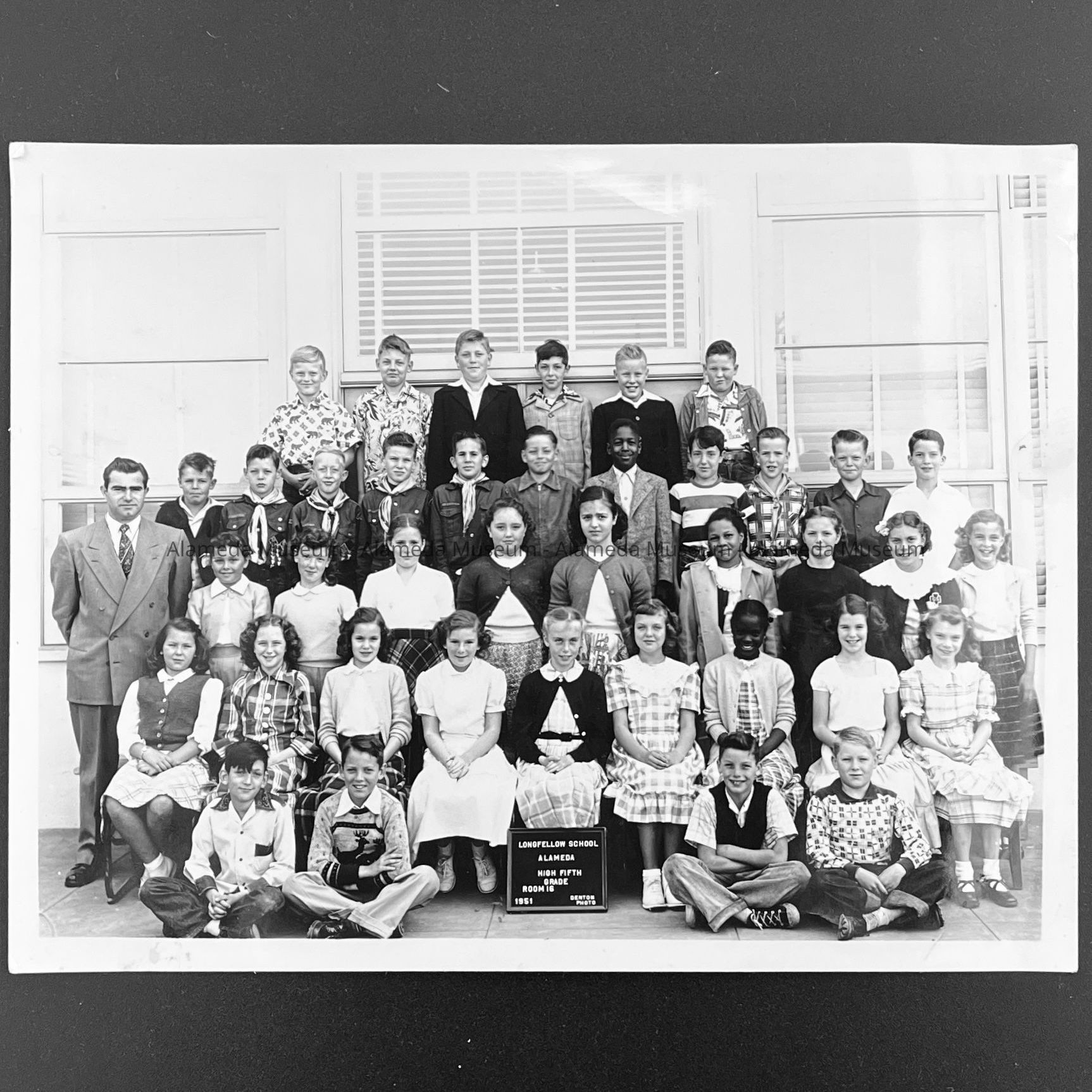 History of Object: Class Photo of Longfellow School, Alameda, High Fifth Grade, 1951, Room 16.
