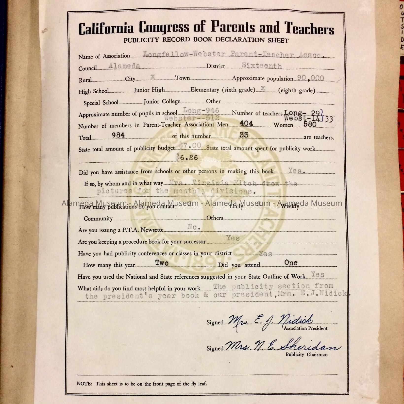 Longfellow Webster PTA Publicity Record, 1947-1948Entry/Object ID